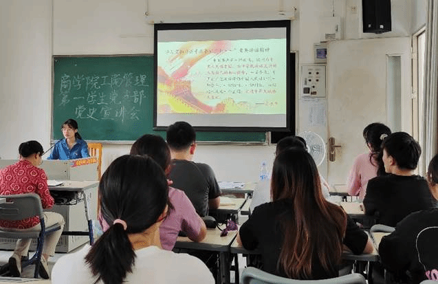 学校百年党史大学生宣讲团成员刘晓琪同学为工商管理第二学生党支部、市场营销第一学生党支部以及市场营销第二学生党支部带来以“中华民族伟大复兴进程不可逆转”为主题的宣讲,从经济建设及精神文明建设两个方面阐述实现中华民族伟大复兴为何已经进入了不可逆转的进程,并发出号召,呼吁青年党员一起践行“请党放心、强国有我”的青春誓言。