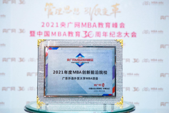 广东外语外贸大学MBA项目荣获:2021年度MBA创新前沿院校