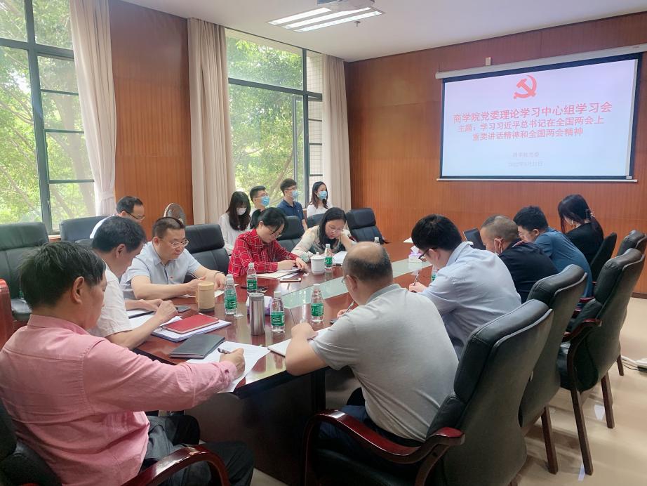3月21日上午,商学院党委理论学习中心组在南校区院系楼360会议室召开学习会,专题学习习近平总书记在全国两会上的重要讲话和全国两会精神。会议由商学院党委书记魏传文主持,商学院班子成员与党支部书记参加。