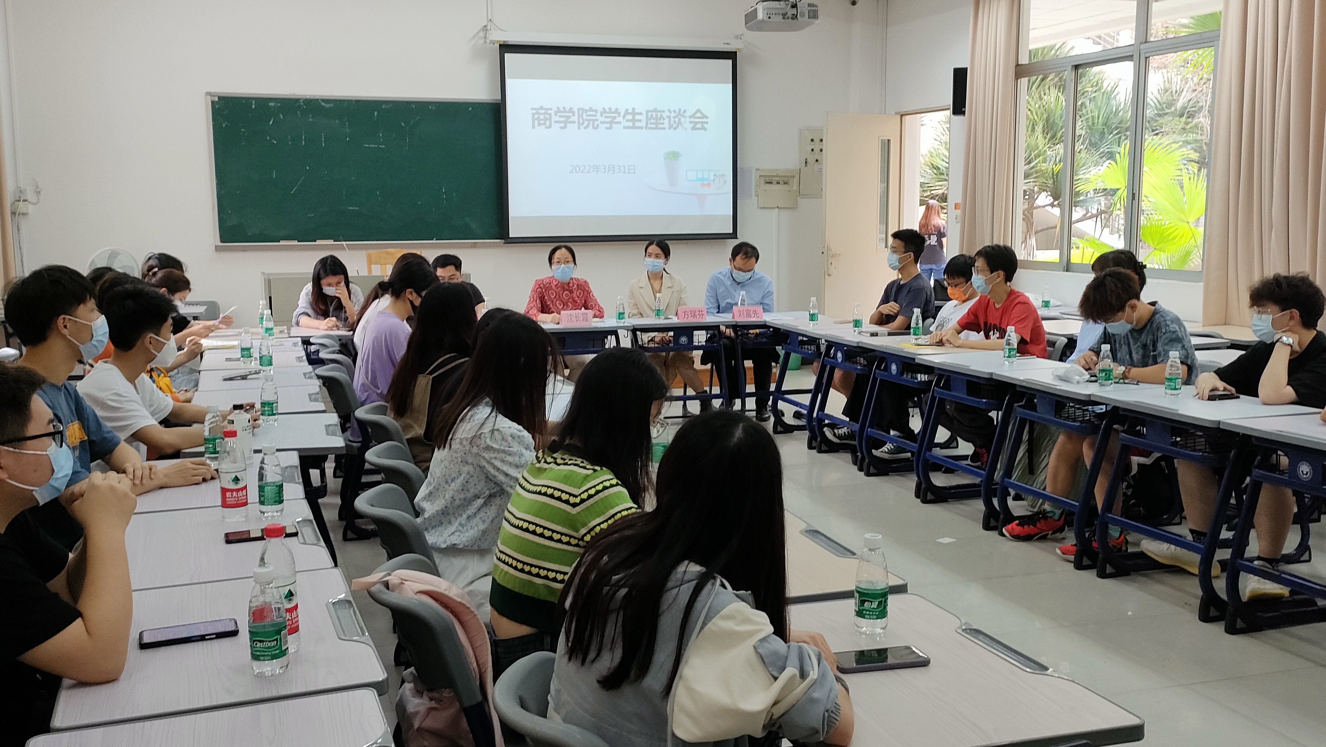 为进一步提升学生的获得感、幸福感和满意度,畅通师生交流渠道,3月31日下午,商学院在南校区教学楼B106召开新学期学生代表座谈会。商学院党委书记魏传文,副书记沈长霞,商学院辅导员以及各年级学生代表参加会议。会议由沈长霞主持。