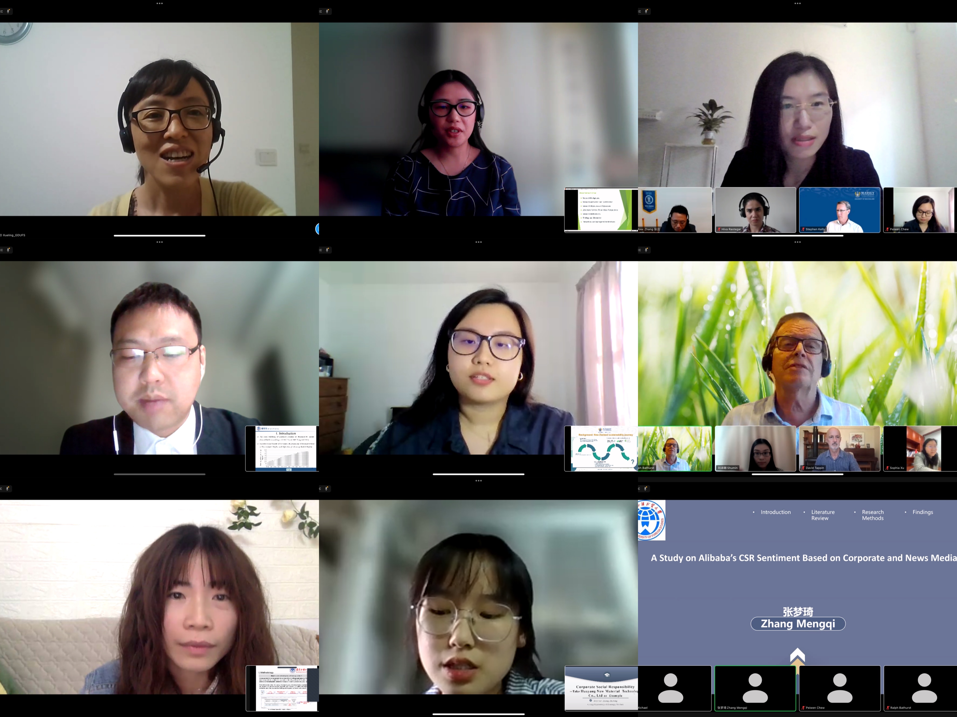 在主旨发言环节,苗学玲、Ralph Bathurst等9位来自我校、梅西大学、奥克兰大学的老师及学生分表发表演讲,其主题分别有《企业慈善捐赠的情感动员:鸿星尔克和安踏微博评论的话语分析》、《进路与出路:探索伊甸园的漫漫长路(社会低碳发展的必要性与辩证发展研究)》、《探讨企业可持续发展举措的影响:新西兰的一项实证研究》。演讲嘉宾分别从不同角度阐释了学者对可持续、高质量发展和企业社会责任等的多样化研究成果。