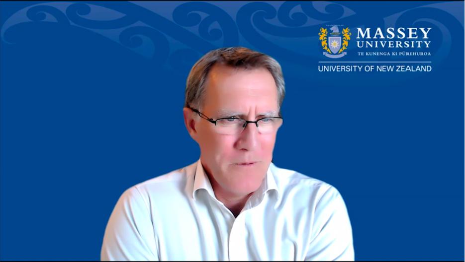 Stephen Kelly主要介绍了疫情后梅西大学在国际交流、学科发展方面所做的关于线上教育的变革及进步,同时表示对供应链可持续发展等议题的关注。