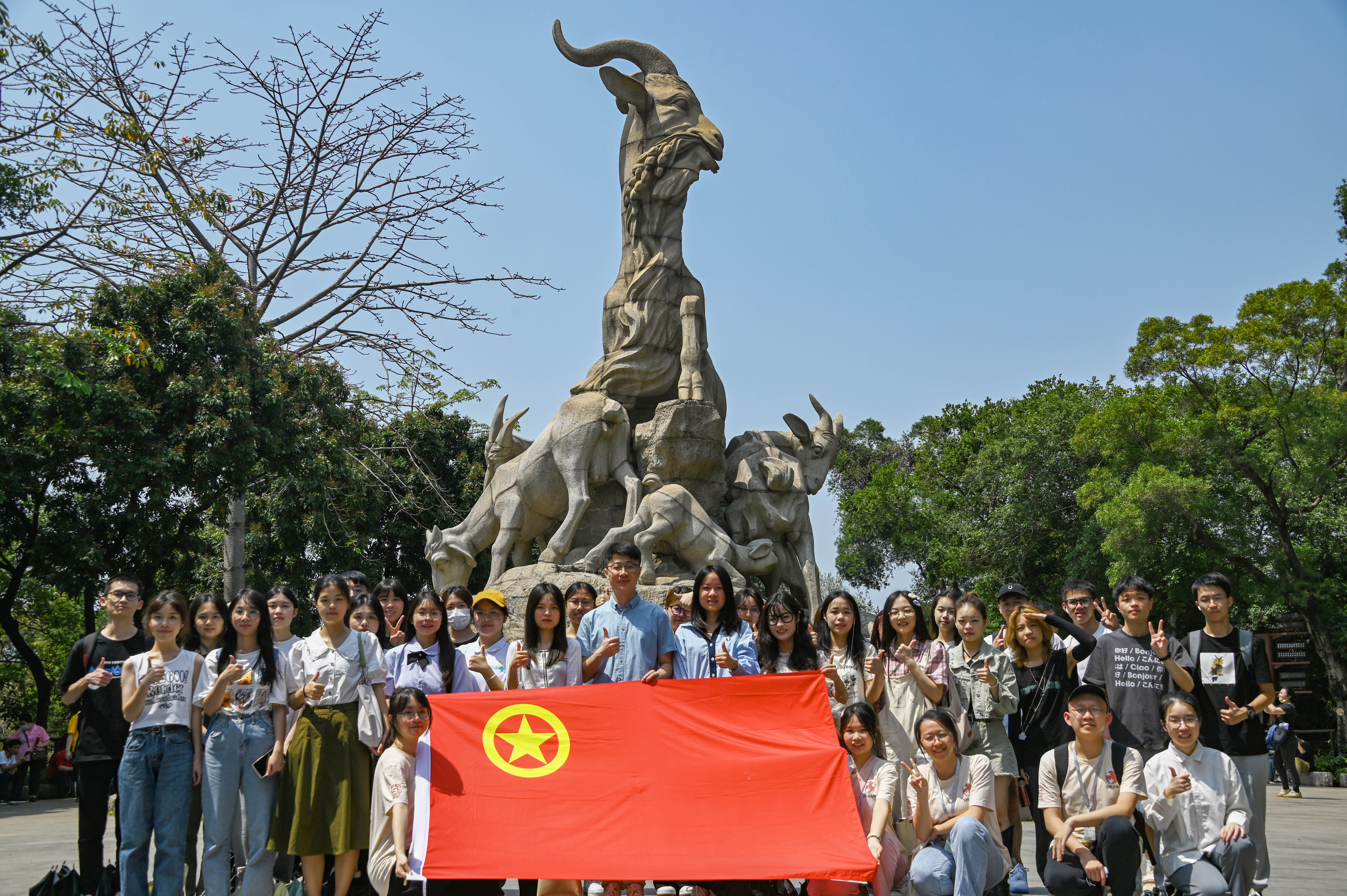 队伍首先抵达广州越秀公园。在这里,同学们了解了广州城市标志——五羊雕像的来历传说和美好寓意,感悟其所承载的报恩、慈爱、勤劳、互助、勇敢精神,在探寻文化底蕴中汲取前行力量。