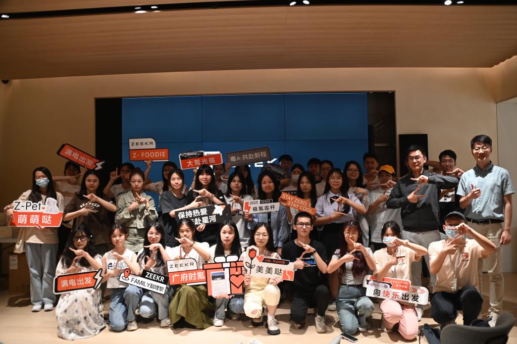 博物馆参观结束后,同学们到达吉利控股集团旗下的极氪中心。在这里,企业负责人详细介绍了吉利的创立历史和新能源科技产品的设计理念。在工作人员的邀请下,同学们坐上试驾车亲身体验极氪汽车的舒适度与便捷度,切实感受科技发展带来的幸福感。在座谈环节中,同学们和企业负责人围绕企业经营运作、文化氛围、招聘要求等方面进行交流,针对同学们感兴趣的问题,企业负责人一一作出回应,现场气氛融洽,讨论热烈。
