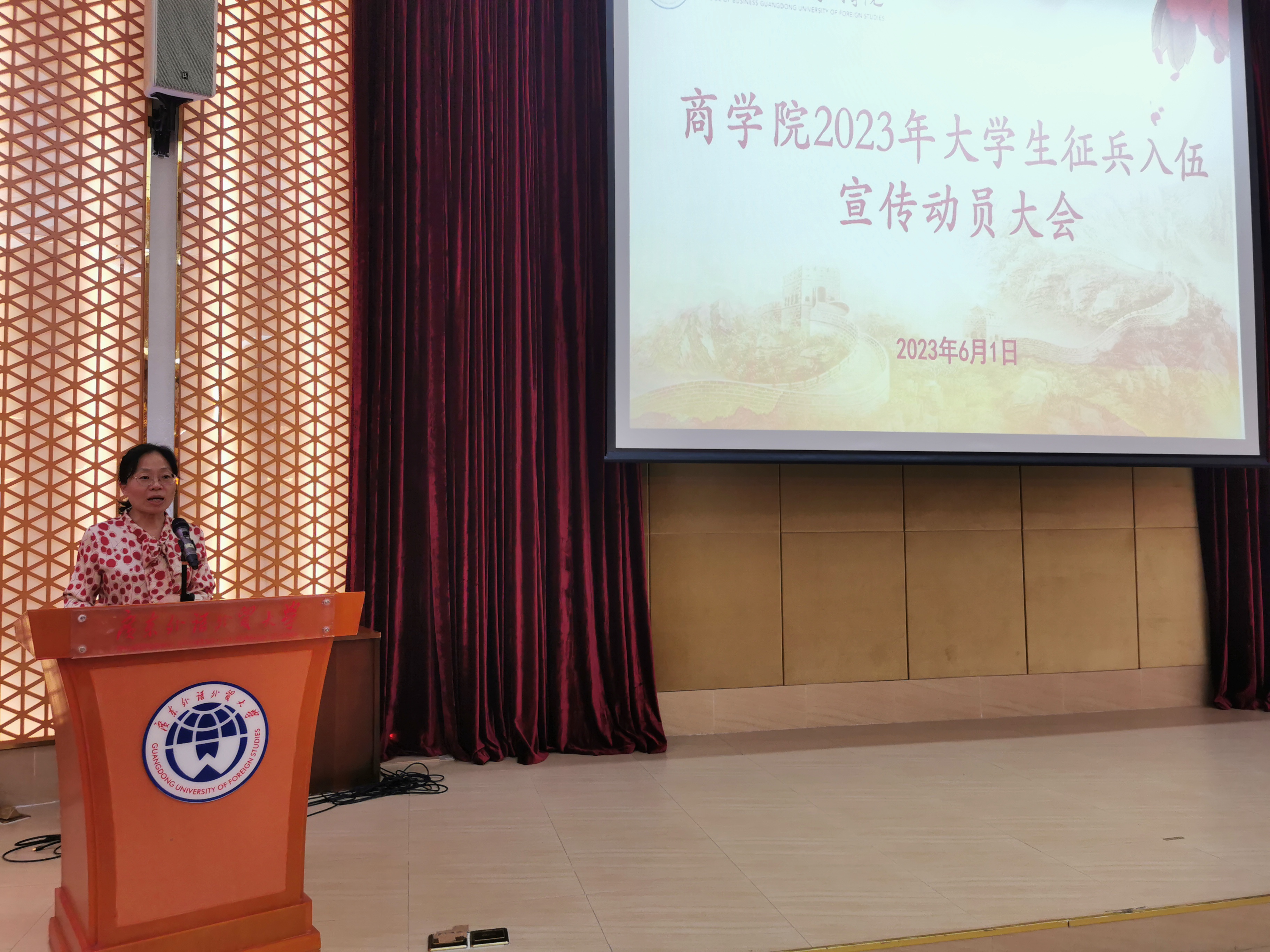 为加强同学们对国家征兵入伍政策的了解,增强国家安全和国防建设的认识,激励同学们积极报名参军,6月1日,商学院在大学城校区八角楼会议室举行了2023年大学生征兵入伍宣传动员大会。商学院党委书记肖喜明、武装部副部长朱永海、大学生退役士兵陈慧珊、邓嘉燕出席会议。会议由商学院党委副书记沈长霞主持。
