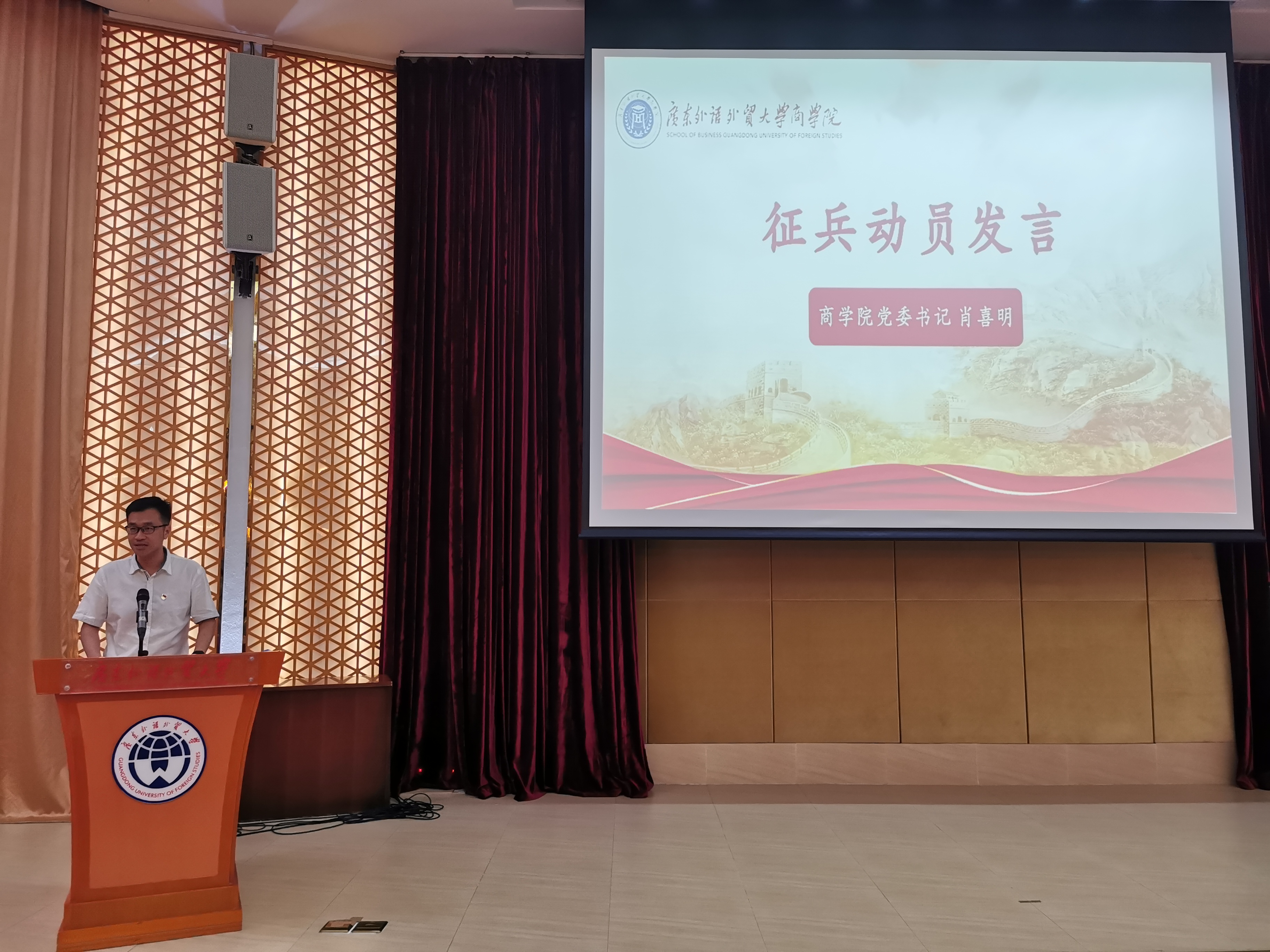 首先,肖喜明作征兵动员讲话,他号召同学们积极响应国家号召,树立立志报国成才的远大理想。他强调“强国必须强军,军强才能国安”,实现我国的强军目标需要每一个有志青年的积极参与。大学生入伍能够为我国军事力量注入新鲜血液,有助于我国的国防和军事建设。他激励更多的商院学子积极报名入伍,让青春在军营闪光,让梦想从军营起航。