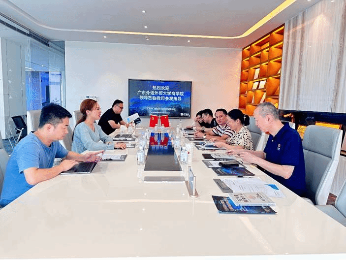 广东奥飞数据科技股份有限公司执行总裁李碧妍校友对商学院一行的到访表示热烈欢迎,并一同参观了奥飞数据公司的数字展示厅,随后李碧妍就企业的发展历程、产品及服务情况、党建工作、关键客户服务、产业生态圈等情况做了详细介绍,并就双方未来的合作交流进行了探讨。