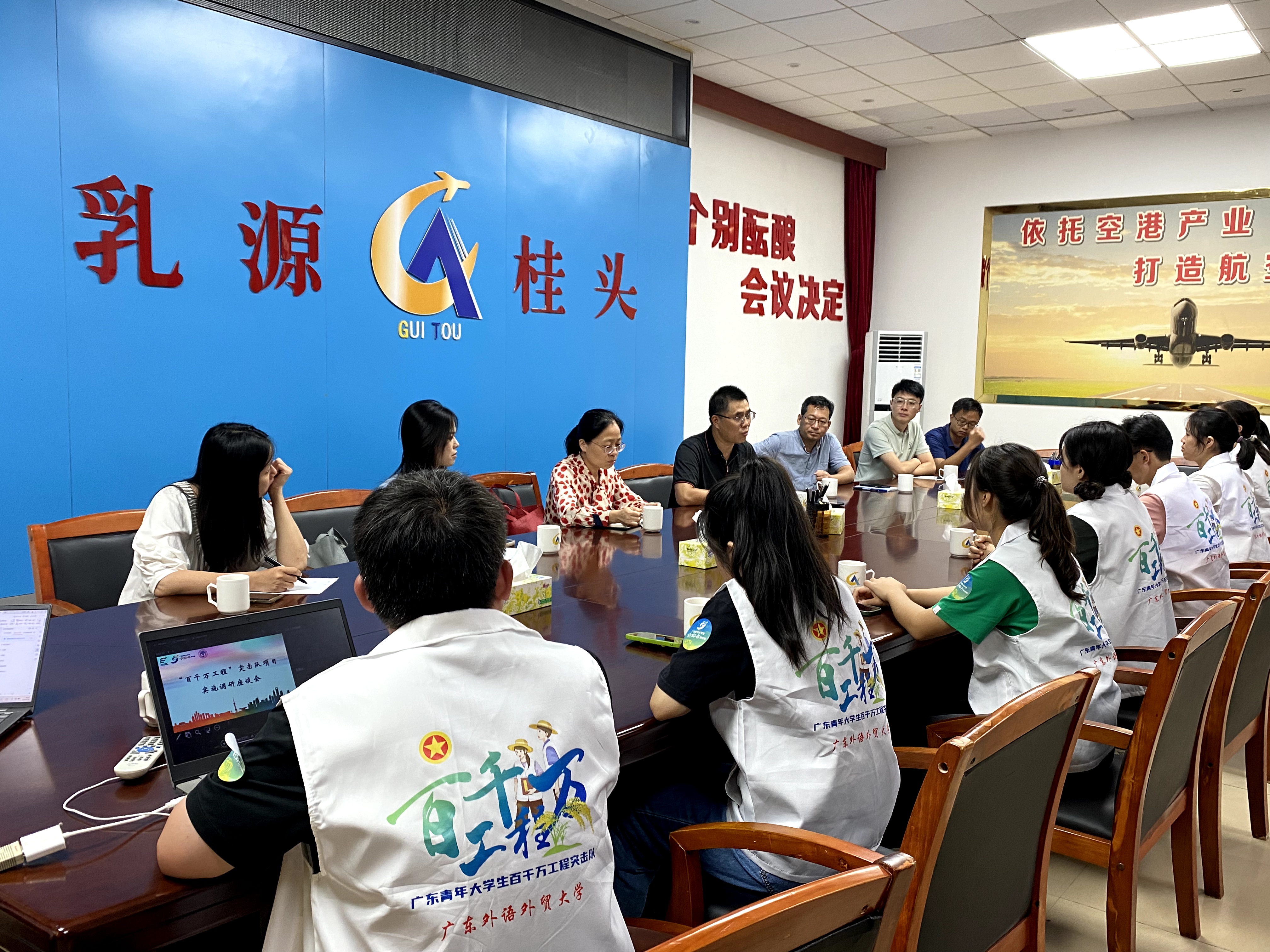 为确保学院暑期“三下乡”社会实践活动安全有序进行,取得预期实践成果,7月9日,商学院党委副书记沈长霞、团委书记张哲、辅导员向媛薇、罗毅颖一行赴韶关市乳源瑶族自治县桂头镇看望慰问“三下乡”社会实践队伍,并在桂头镇政府会议室举办“百千万工程”突击队项目实施调研座谈会。广东外语外贸大学驻王龙围村第一书记黄石胜、驻村工作队队员刘更,商学院2017级校友、乡村振兴志愿者石富东,“百千万工程”突击队省级优秀示范项目“芋后春笋”项目团队成员参加座谈会。