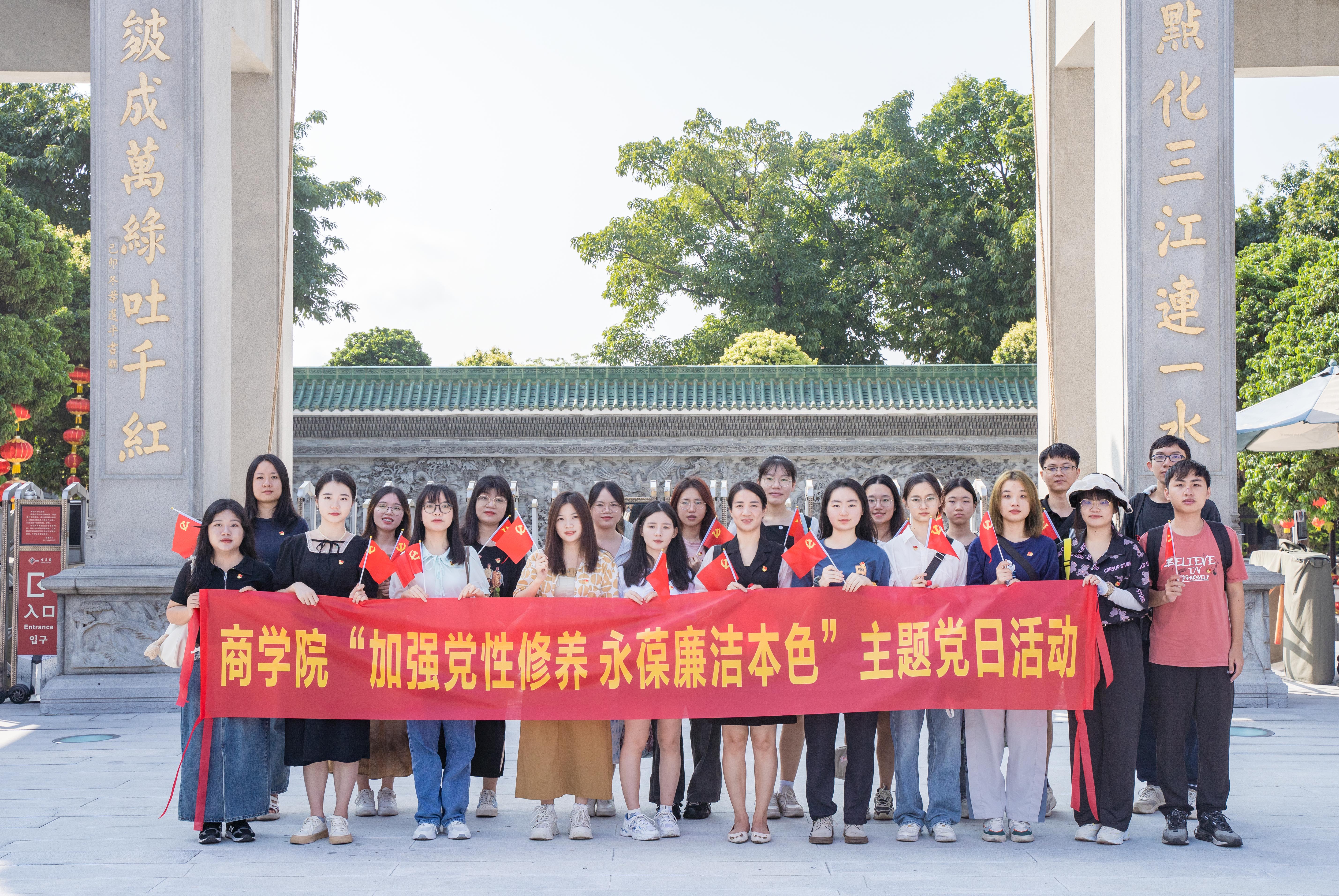 为了深入学习贯彻党的二十大精神,学习习近平新时代中国特色社会主义思想,庆祝中华人民共和国成立74周年,加强党员清正廉洁建设,9月21日上午,商学院师生党员在廉洁文化教育基地宝墨园开展“加强党性修养,永葆廉洁本色”主题党日活动。