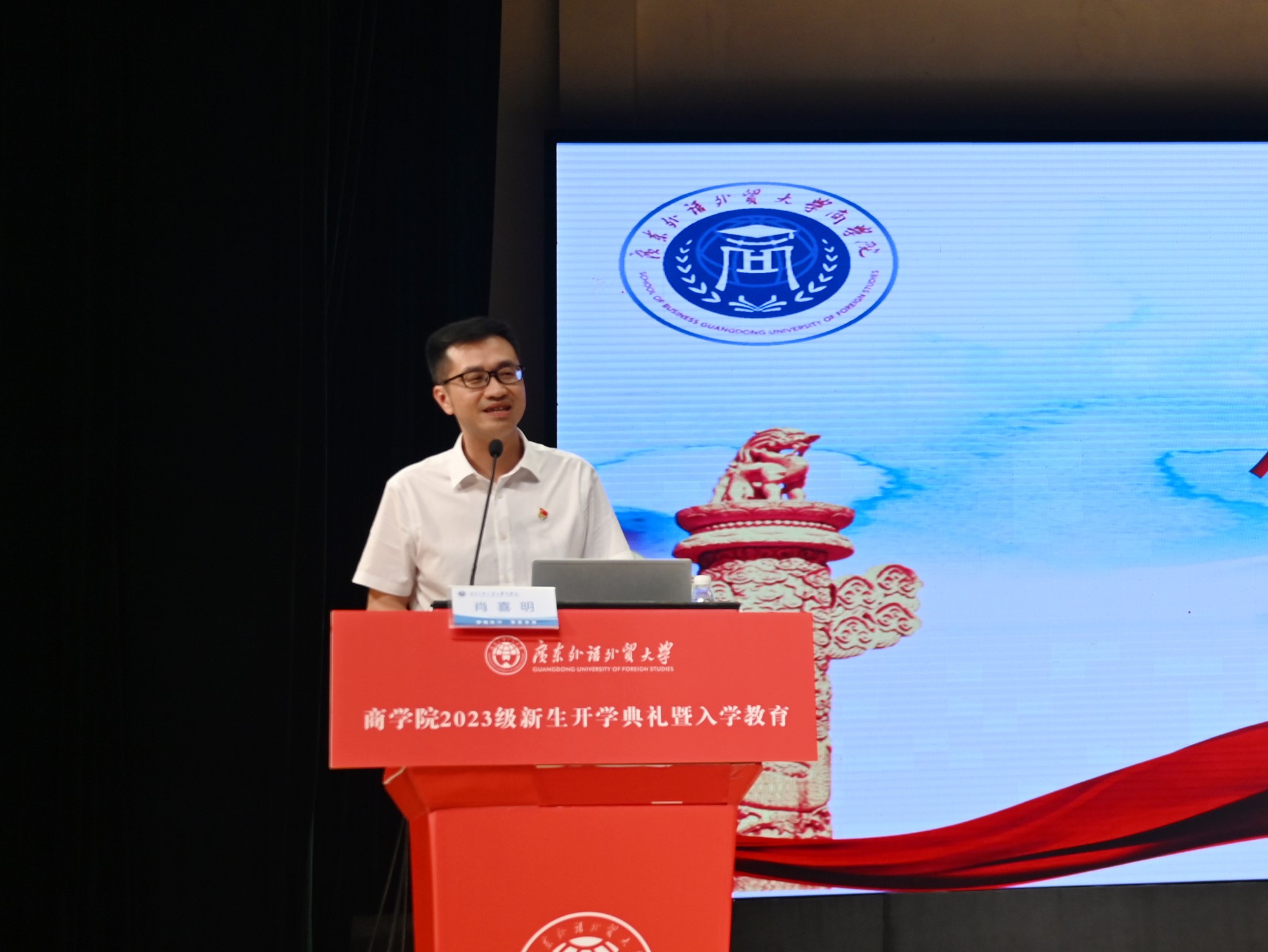 9月4日,商学院党委书记肖喜明在2023级新生入学教育中以“信仰的力量”为主题,以三个问题为引子,为同学们讲授“思政第一课”。