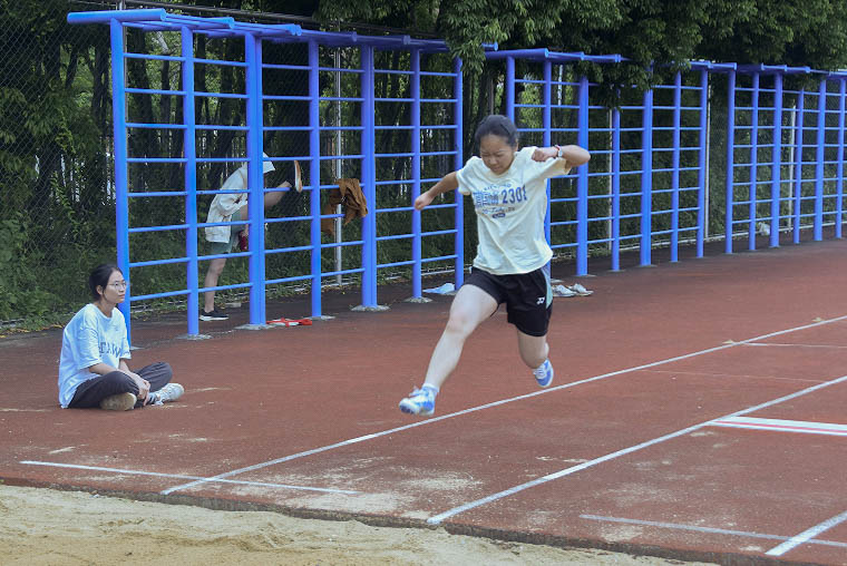 踏上跑道,是一种选择。离开起点,是一种勇气。驰骋赛场,是一种胜利。萧瑟的秋风,挡不住你们破竹的锐气。选手们依次起跳,距离远者为胜。最终,黎骏旭和苏紫珊夺得跳远组桂冠,陈子扬和胡佳馨获得三级跳远的冠军。
