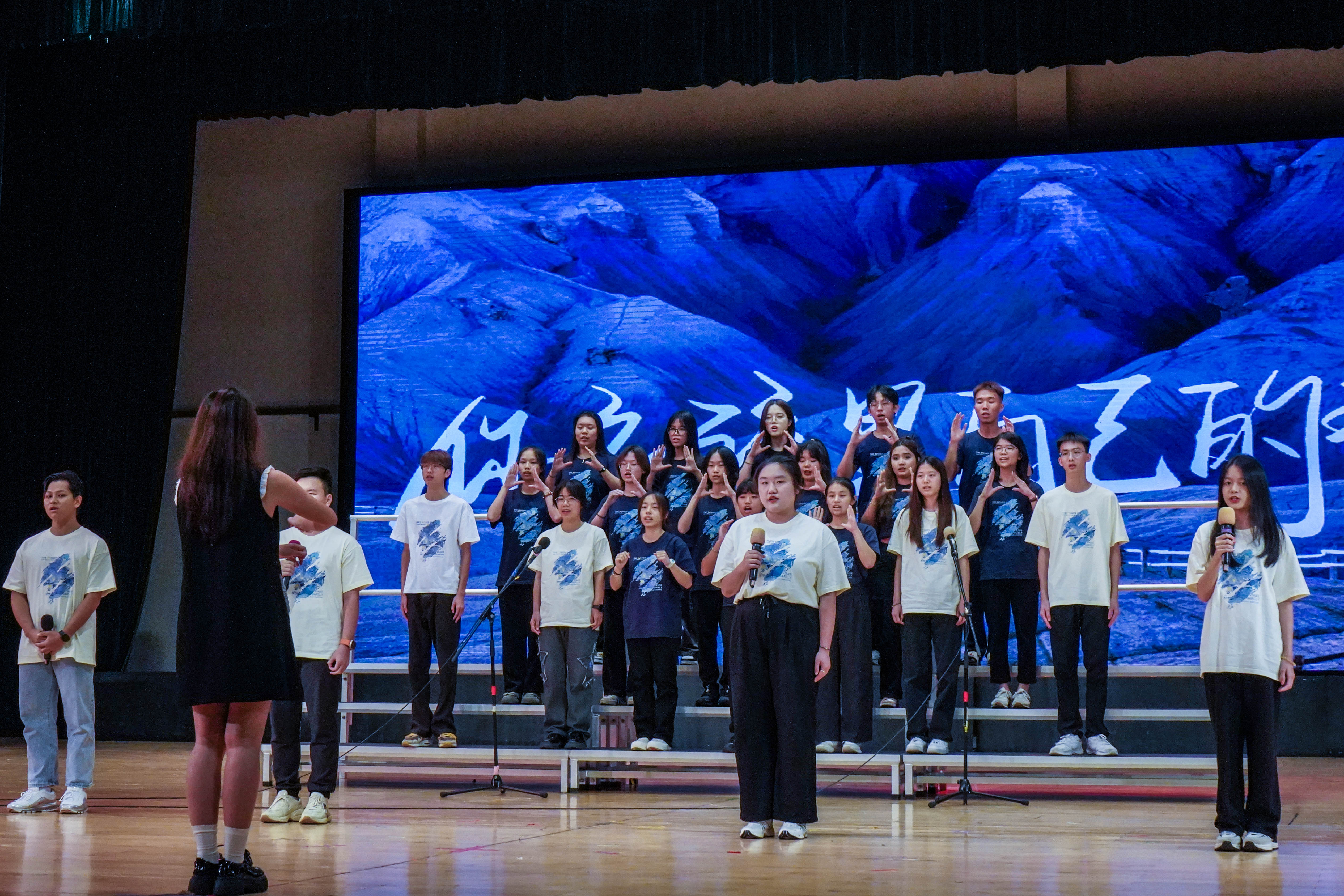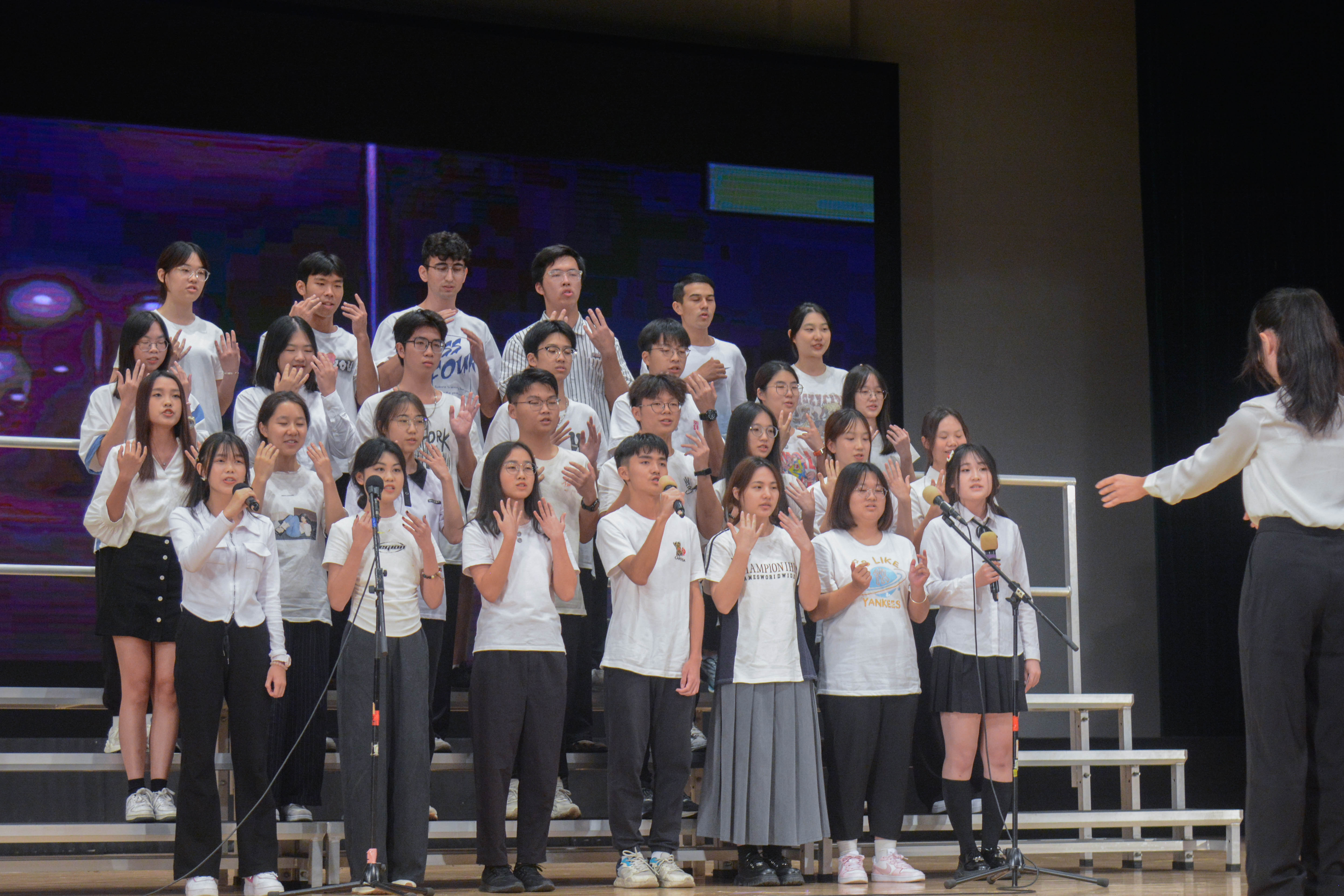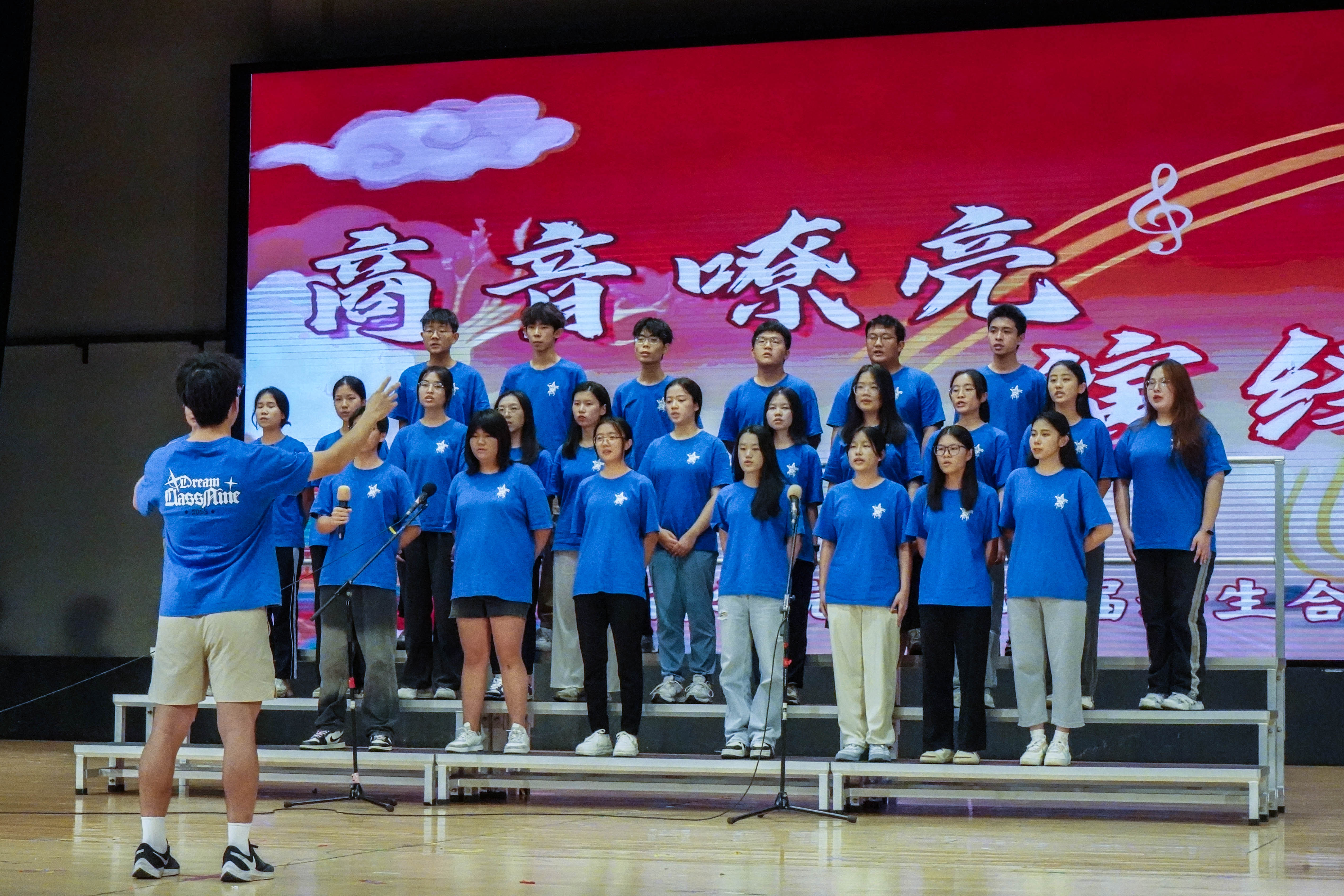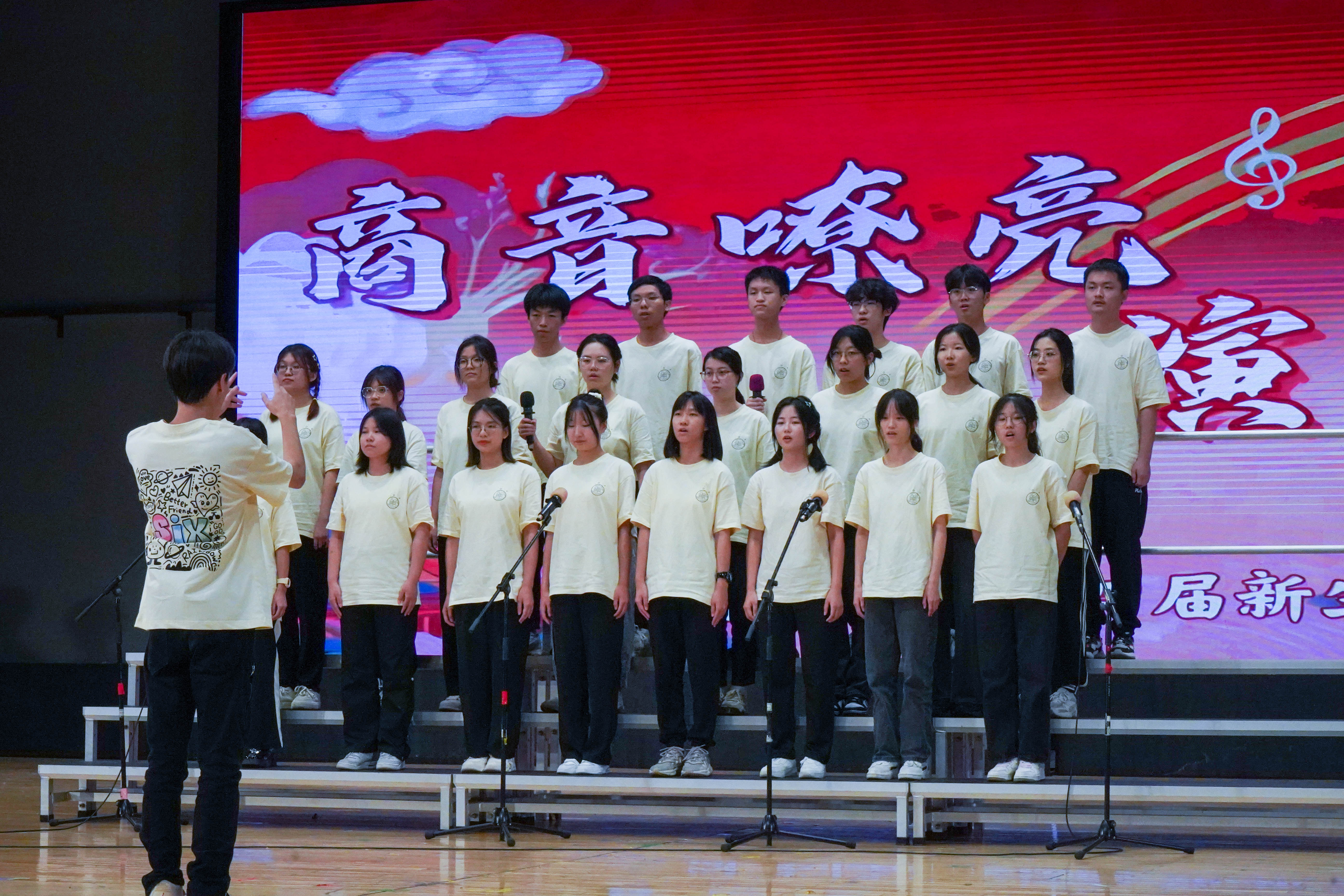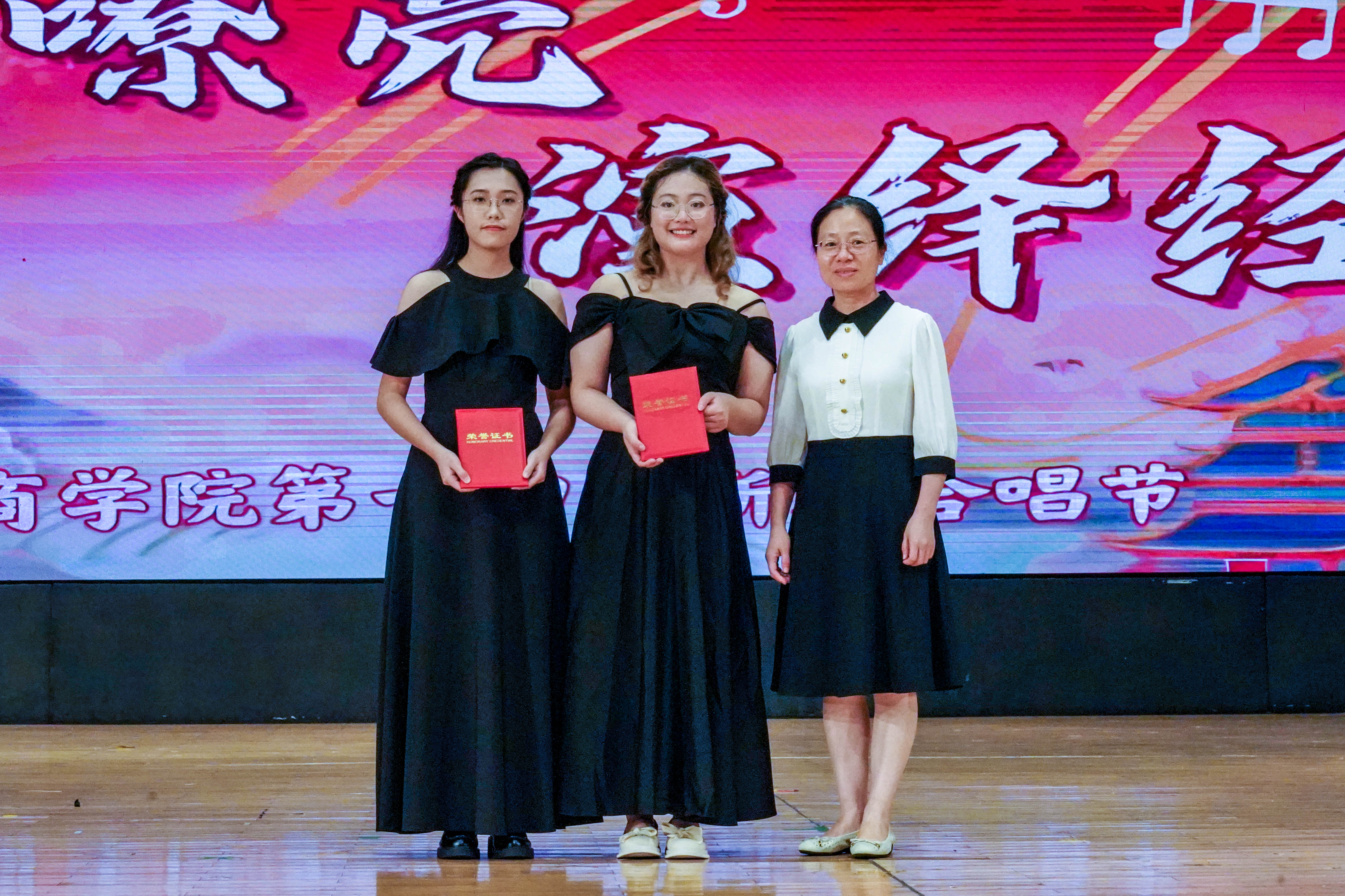最后来到激动人心的颁奖环节。获得本次新生合唱节一等奖的班级是工管2303班,获得二等奖的班级是商创2301班、国创2301班,共有四个班级获得了三等奖,分别是工管2307班、工管2305班、工管2304班、电商2301班,获得最佳指挥奖的是商创2301班的陈梓茵与国创2301班的曾颂殷同学。