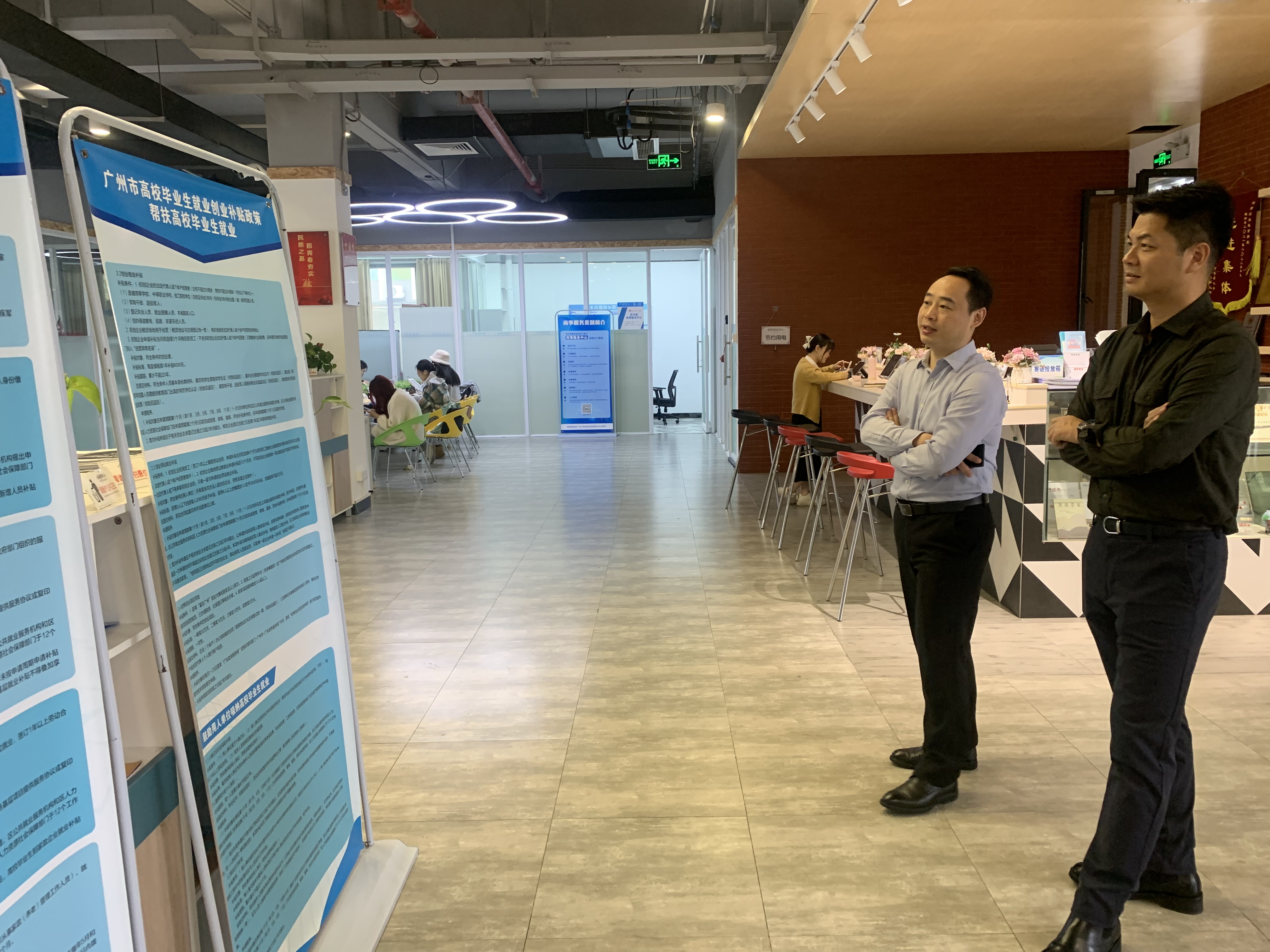 广州市人力资源和社会保障局二级调研员肖海、二级主任科员刘坤、我校创业学院相关工作人员陪同调研。