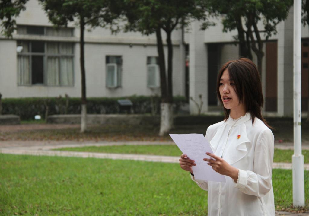 升旗结束后,团支书代表、新入团团员代表、入团积极分子分子代表分别作心得分享。团支书代表陈宇笙提到,升旗仪式不仅是一个仪式,它更是精神的洗礼和思想的升华。她还说到,在新时代大学生应以更加饱满的热情和更加坚定的信念迎接未来的挑战和机遇,为实现中华民族的伟大复兴而努力奋斗。