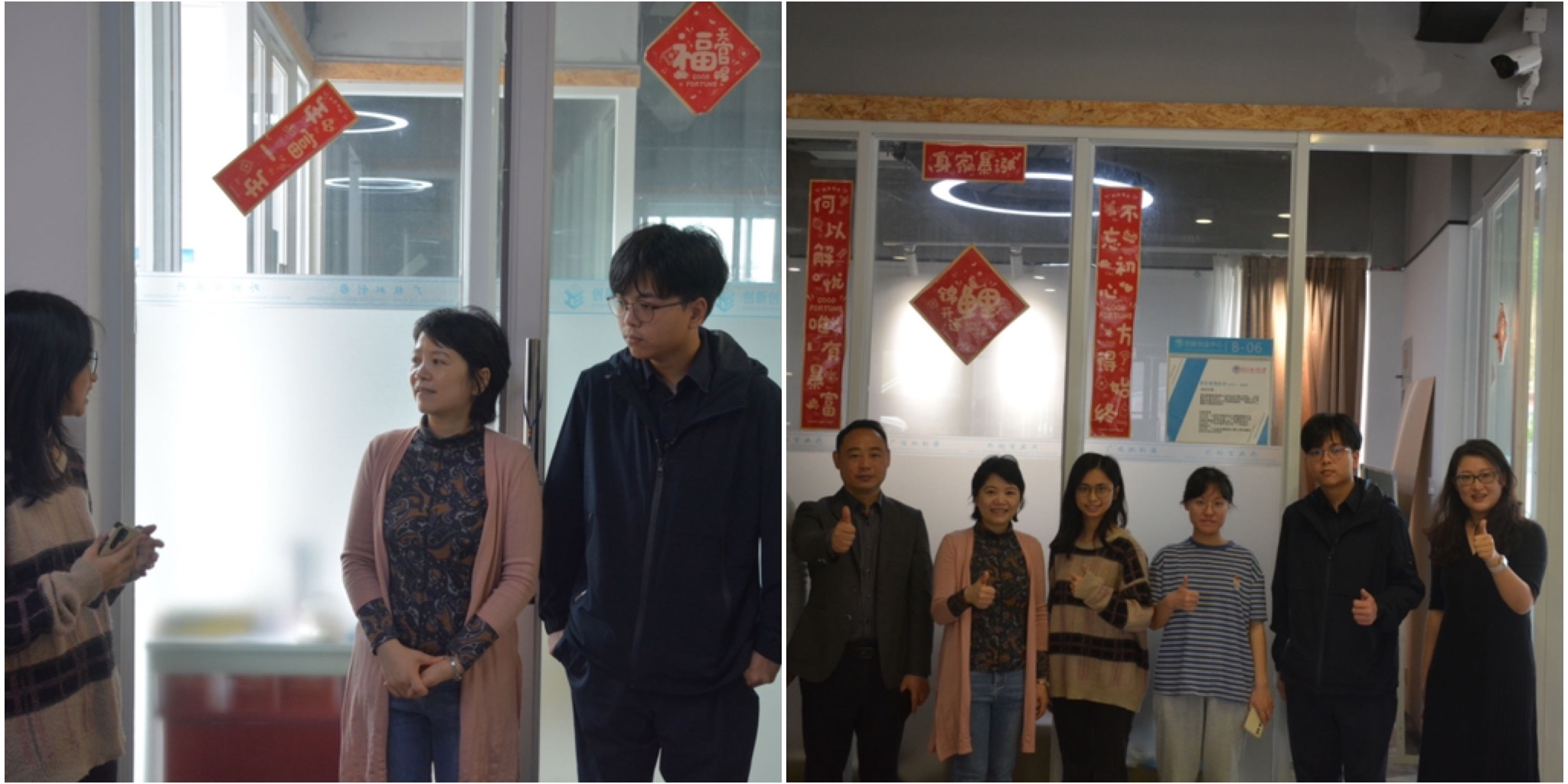 刘方龙陪同来访嘉宾走访国家级创新创业教育实践基地的各功能区域设施,并与入驻的创新创业项目学生成员亲切交流。吴建勋一行对我校国家级创新创业教育实践基地的建设成果表示赞赏,对学生创新创业项目成员的沟通与创新能力给予极大肯定。