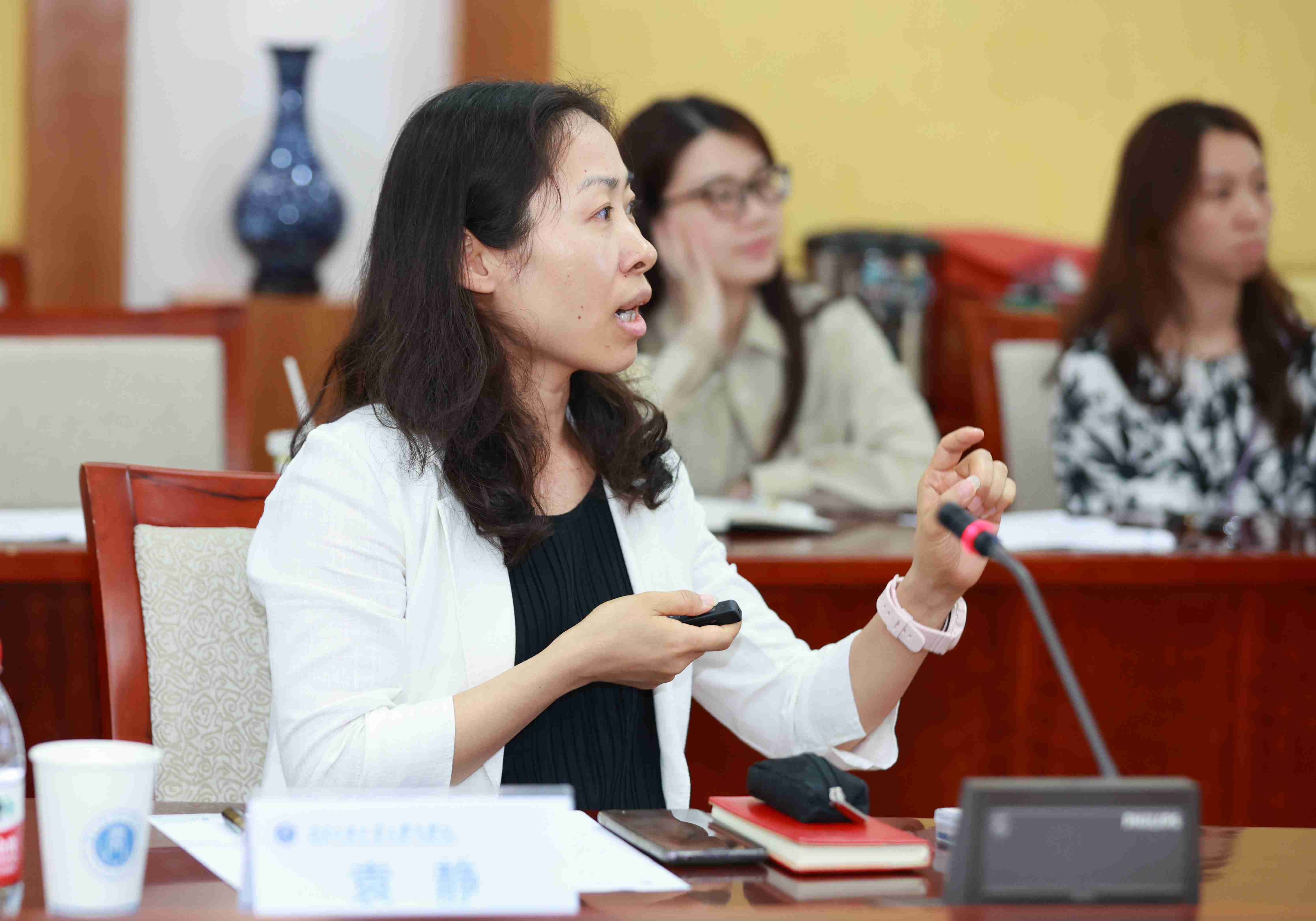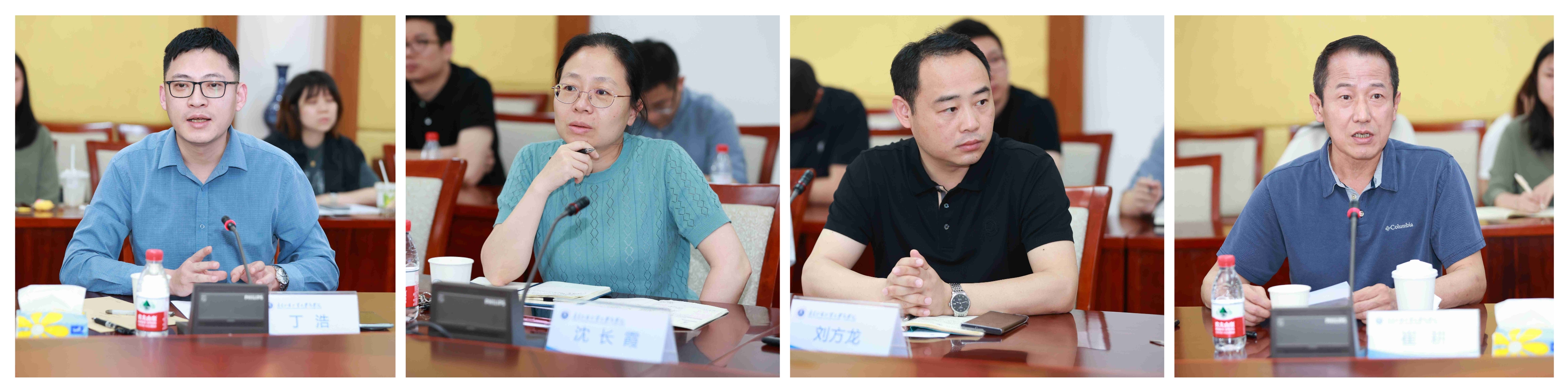 丁浩(左一)、沈长霞(左二)、刘方龙(右一)、崔耕(右二)讨论发言