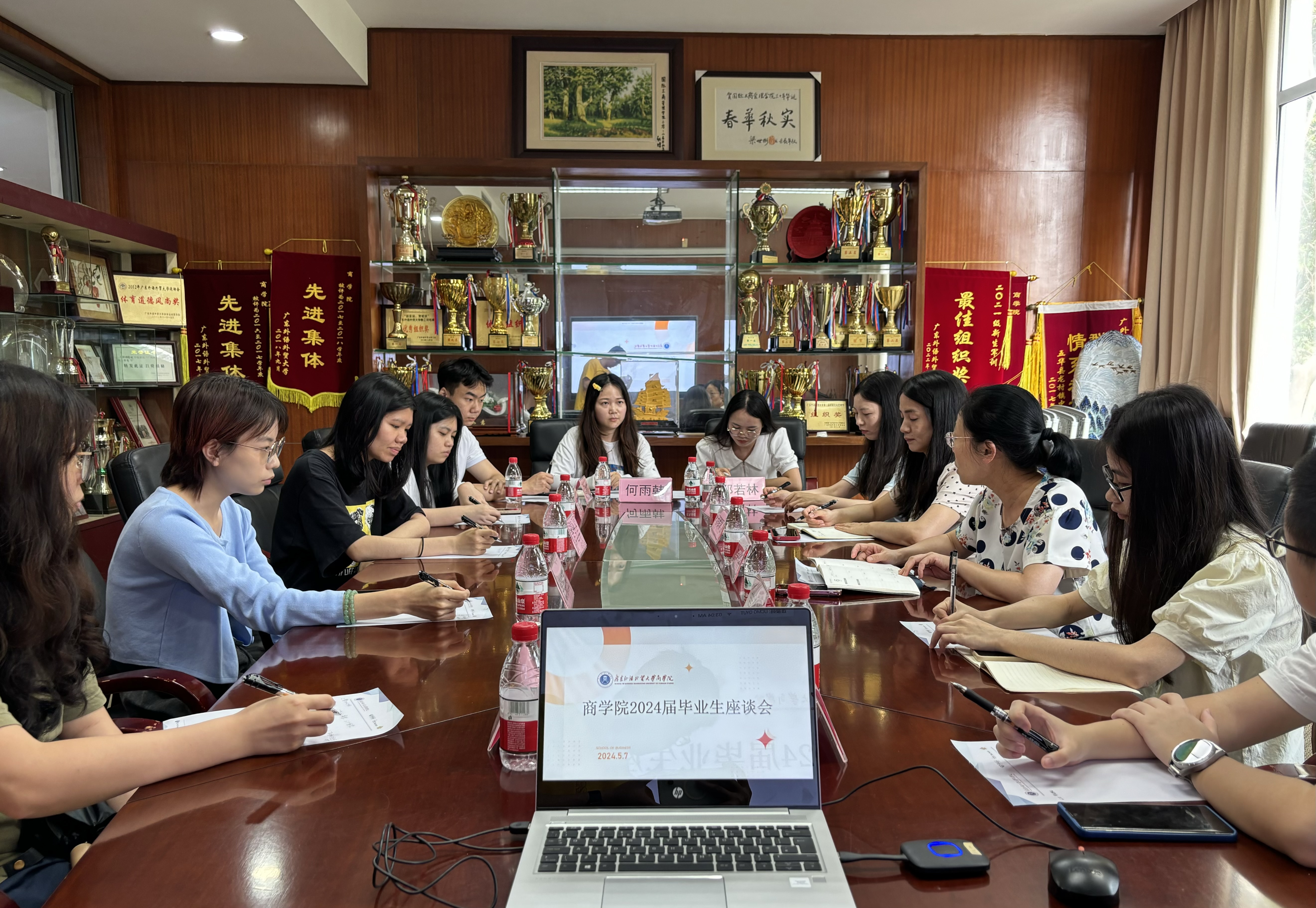 为进一步了解2024届毕业生情况,加强学院与毕业生的沟通交流,促进毕业生充分就业、高质量就业,2024年5月7日,商学院在大学城校区院系办公楼360会议室举行2024届毕业生座谈会。本次座谈会围绕毕业生关切的就业问题进行了深入探讨,商学院党委副书记沈长霞、毕业生辅导员方瑞芬,以及毕业生代表参加会议。