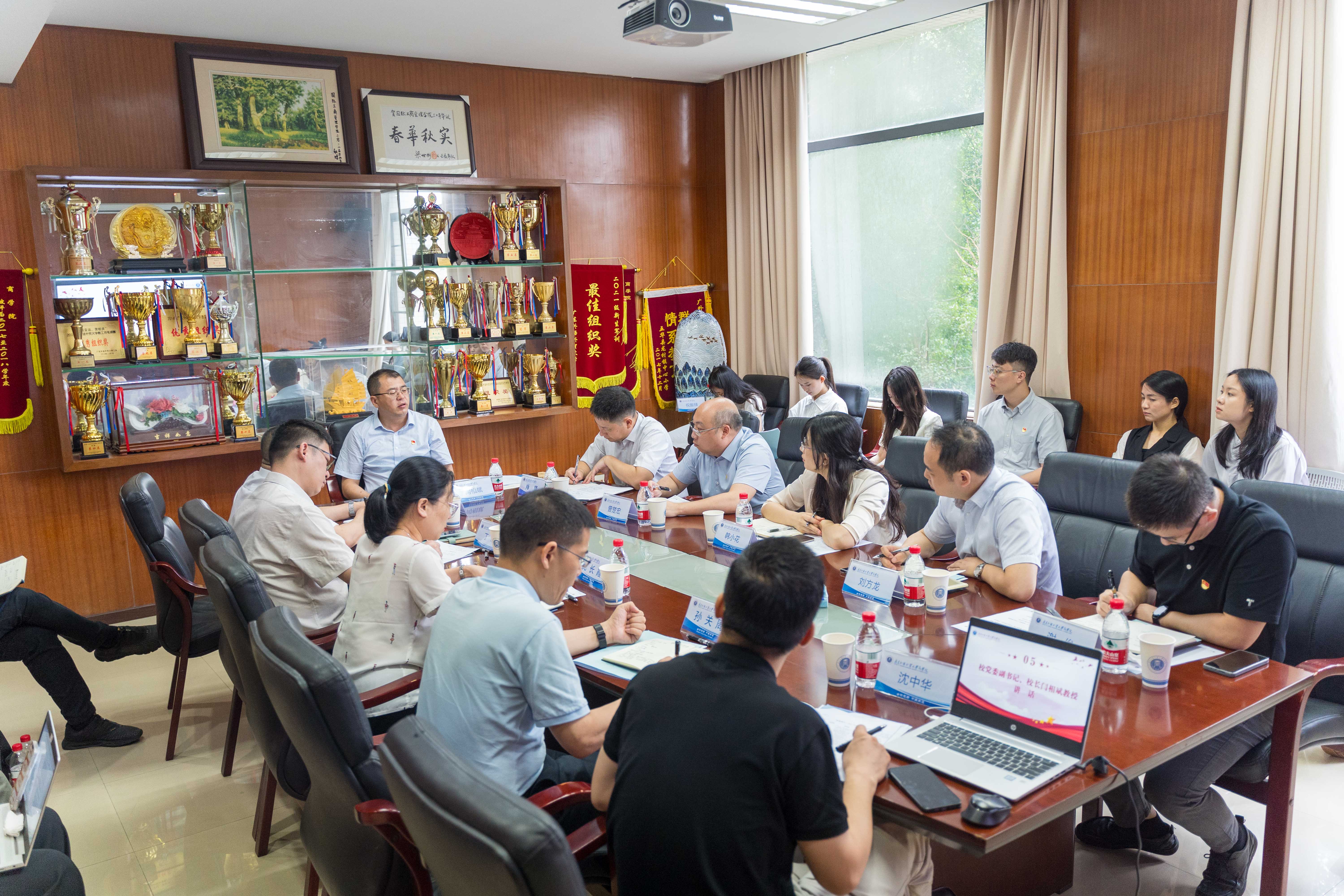 6月18日上午,商学院于大学城校区院系楼360会议室举办“党领商行”2024年行动方案推进暨党建工作研讨会。校党委副书记、校长闫相斌出席会议并指导。商学院党政领导班子、校挂职干部、学院全体党支部书记、学生党支部代表、学院组织员等参加会议。商学院党委书记肖锋主持会议。