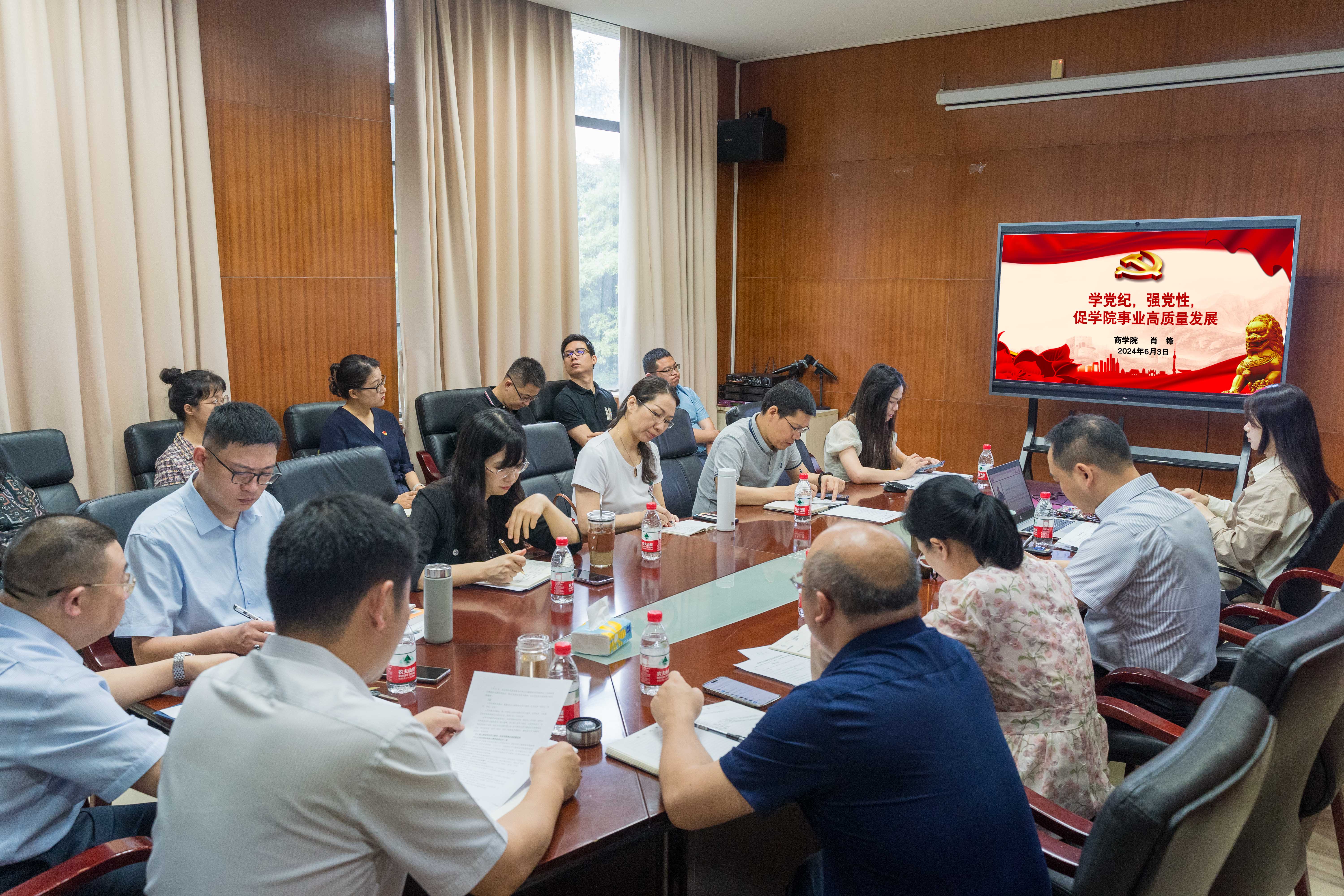 商学院党委深刻认识开展党纪学习教育的重大意义,压紧压实学习责任,不断加强对党支部全面、精准、全过程的指导。各党支部秉承严谨态度,培育浓厚学习气氛,认真贯彻落实确保党纪学习教育有序推进。党员师生对照《条例》原原本本、逐章逐条学,联系实际学,进一步筑牢党员廉洁自律的坚固防线。党纪学习教育进一步夯实了商学院党组织的战斗堡垒作用,为学院高质量发展注入不竭动力。