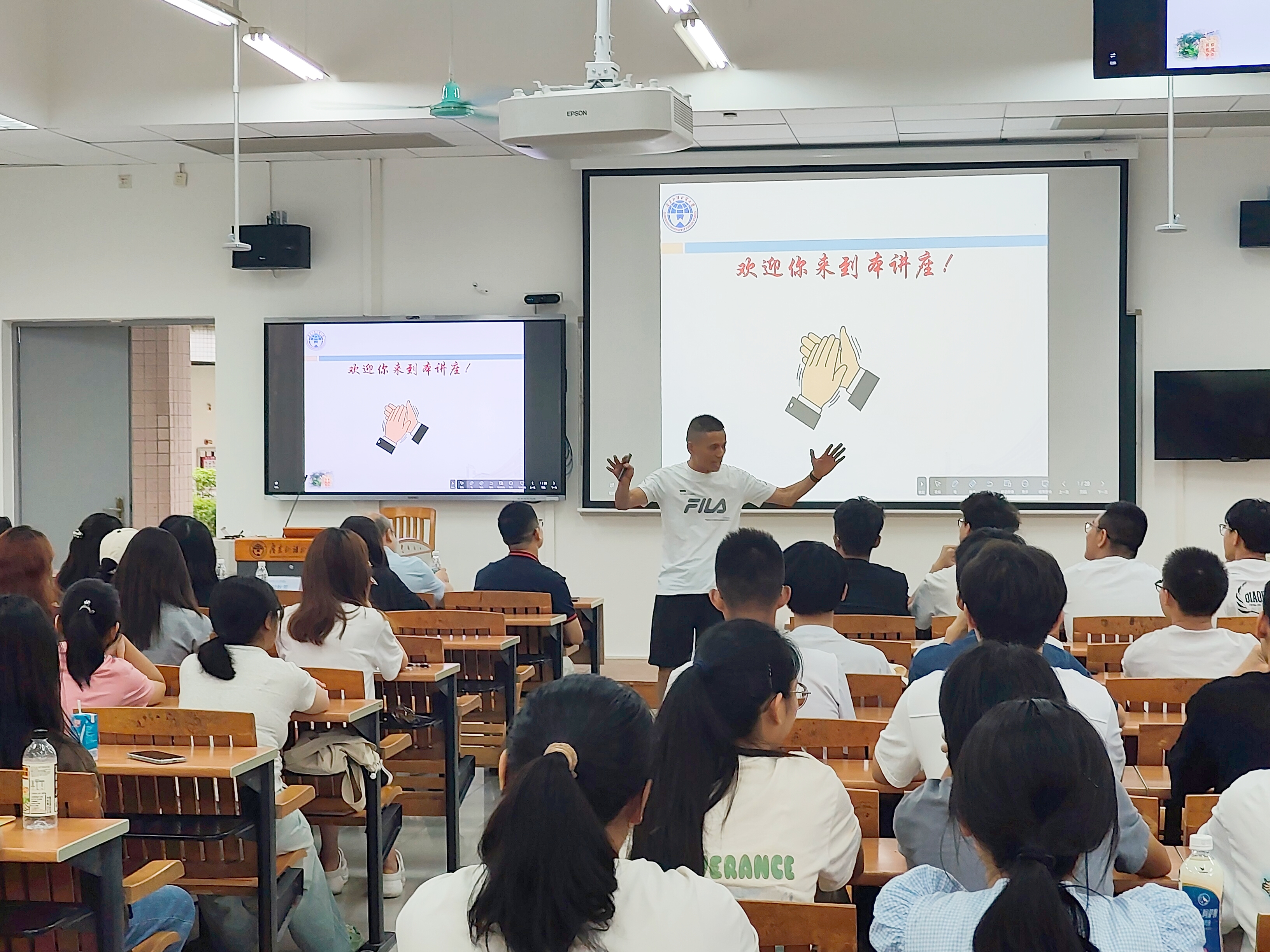 在提问环节,同学们踊跃举手,针对未来考研、留学、供应链管理专业前景以及专业课程等方面与马颖校友进行了深入探讨,现场气氛热烈融洽。同学们对本次讲座表示积极认可,并对未来发展充满动力与期望。