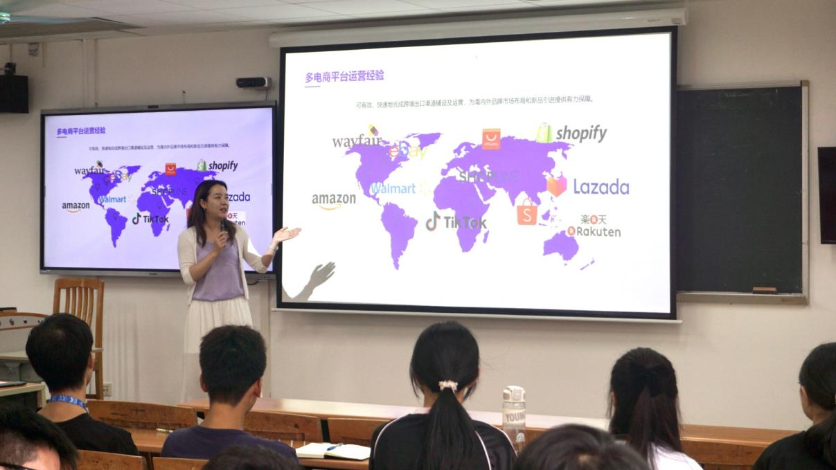 随后,校友谭咏恩对新生们进行了更具实践性和专业对接的行业讲解。她介绍了电子商务的行业现状、发展阶段及市场概况,深刻说明了从事电商行业所需要具备的核心能力。结合时事案例和多年工作经验,她与同学们分享了她的行业感悟和收获,使大家对电子商务的了解更上一层楼,激发了新生们的专业热情,进一步明确了未来职业发展方向。