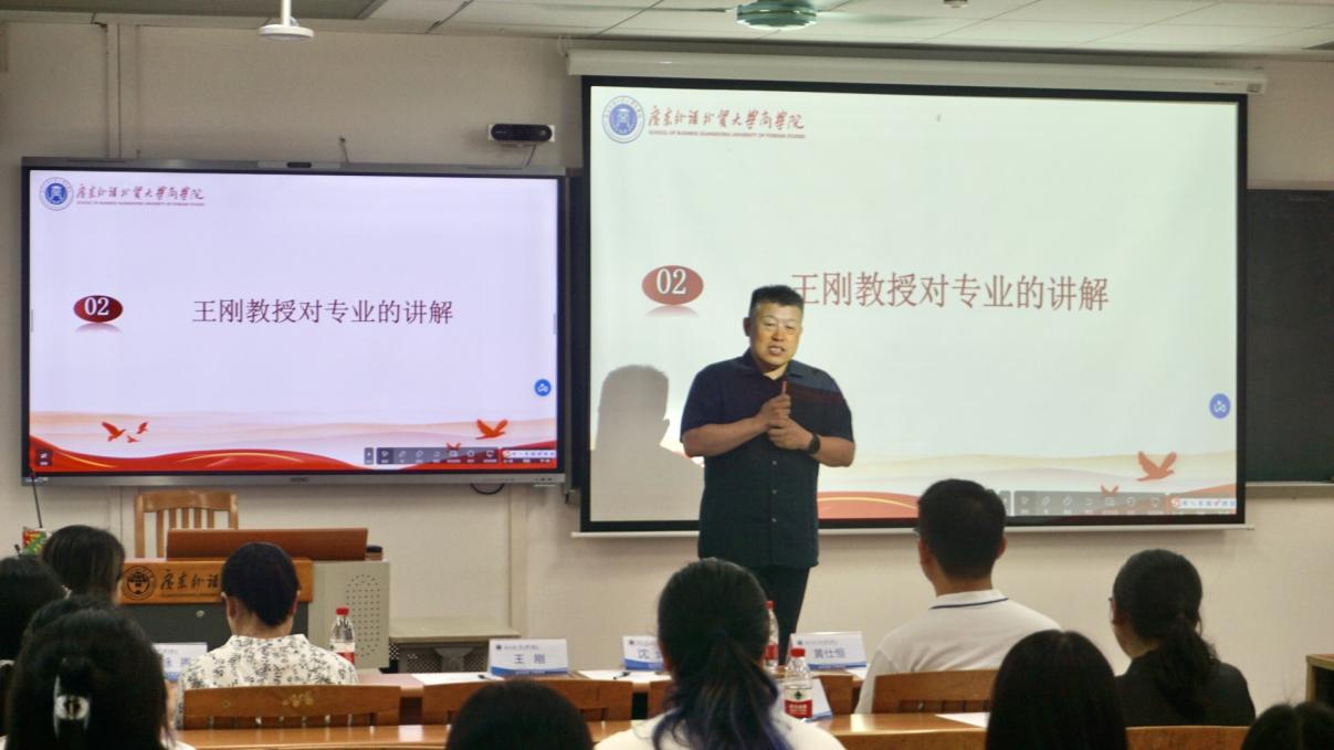 接着,王刚针对电子商务专业进行了简明扼要又不失幽默风趣的讲解。他围绕电子商务的类型、规模以及发展趋势进行了专业讲解,阐明了在大数据时代电子商务的重要性,同时强调了我校外语外贸资源对于发展电子商务的优势,进一步增强了新生对电子商务专业的认识与了解。
