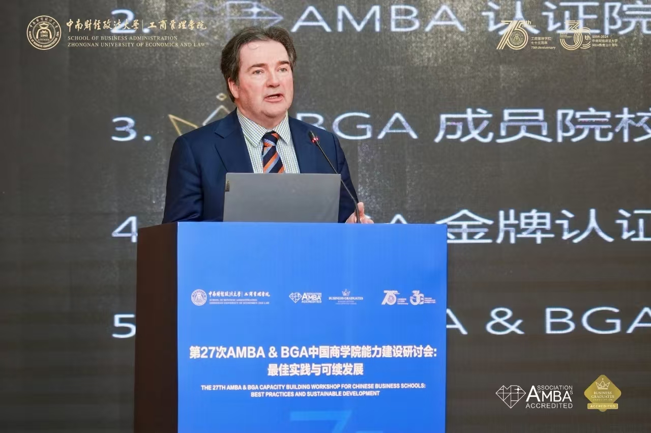 2024年10月27日,由中南财经政法大学工商管理学院和浙江大学全球创业研究中心联合主办的“第27次AMBA&BGA中国商学院能力建设研讨会:最佳实践与可续发展”在武汉成功召开。本次会议由浙江大学人文社会科学资深教授、浙江省特级专家、浙江大学全球创业研究中心主任王重鸣主持,来自全国20多所高校的60余位商学院领导和国际认证负责人参会研讨。我校商学院国际认证与交流办公室主任刘淑敏、MBA教育中心国际事务主管范紫惠应邀参会。