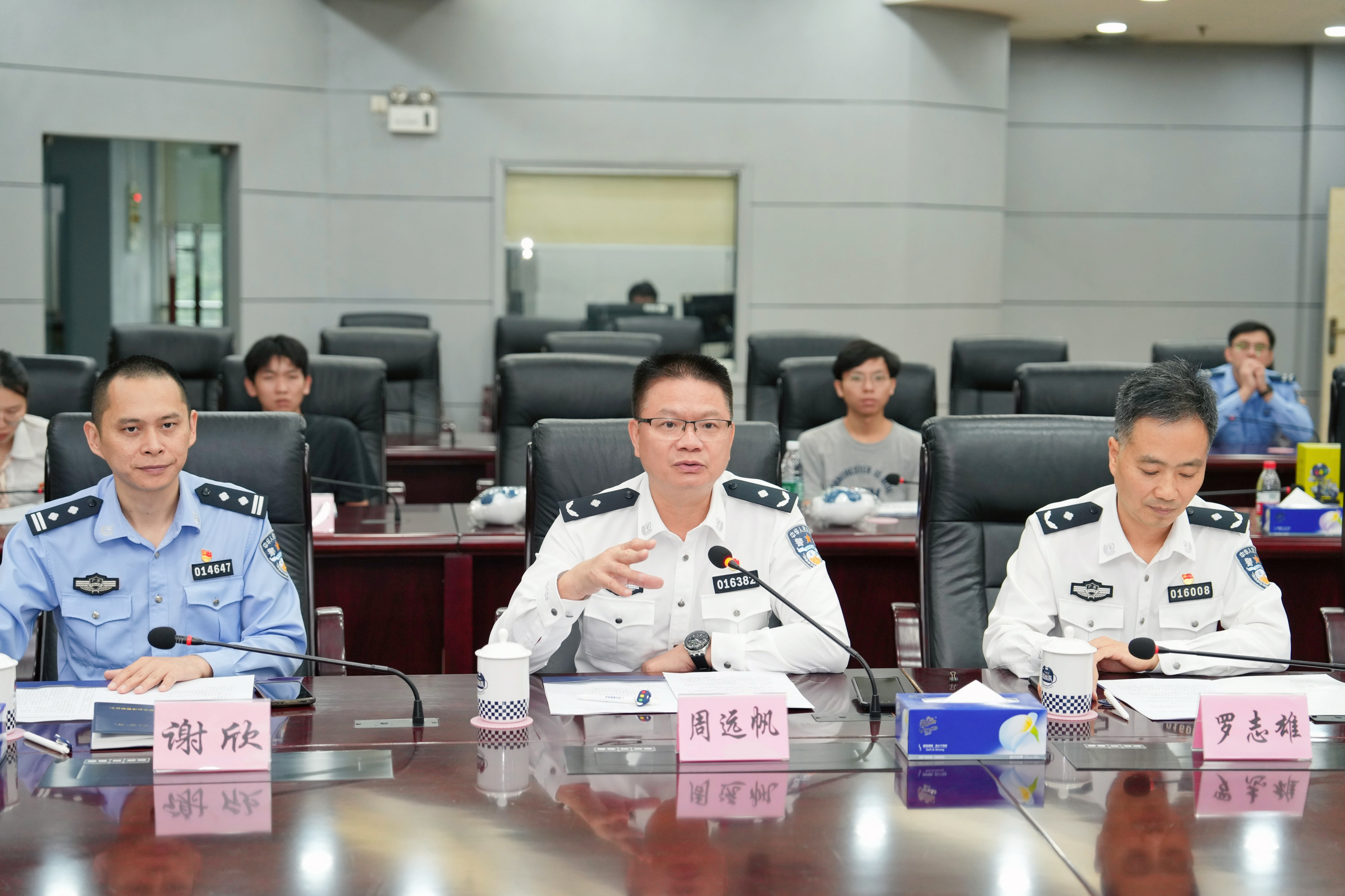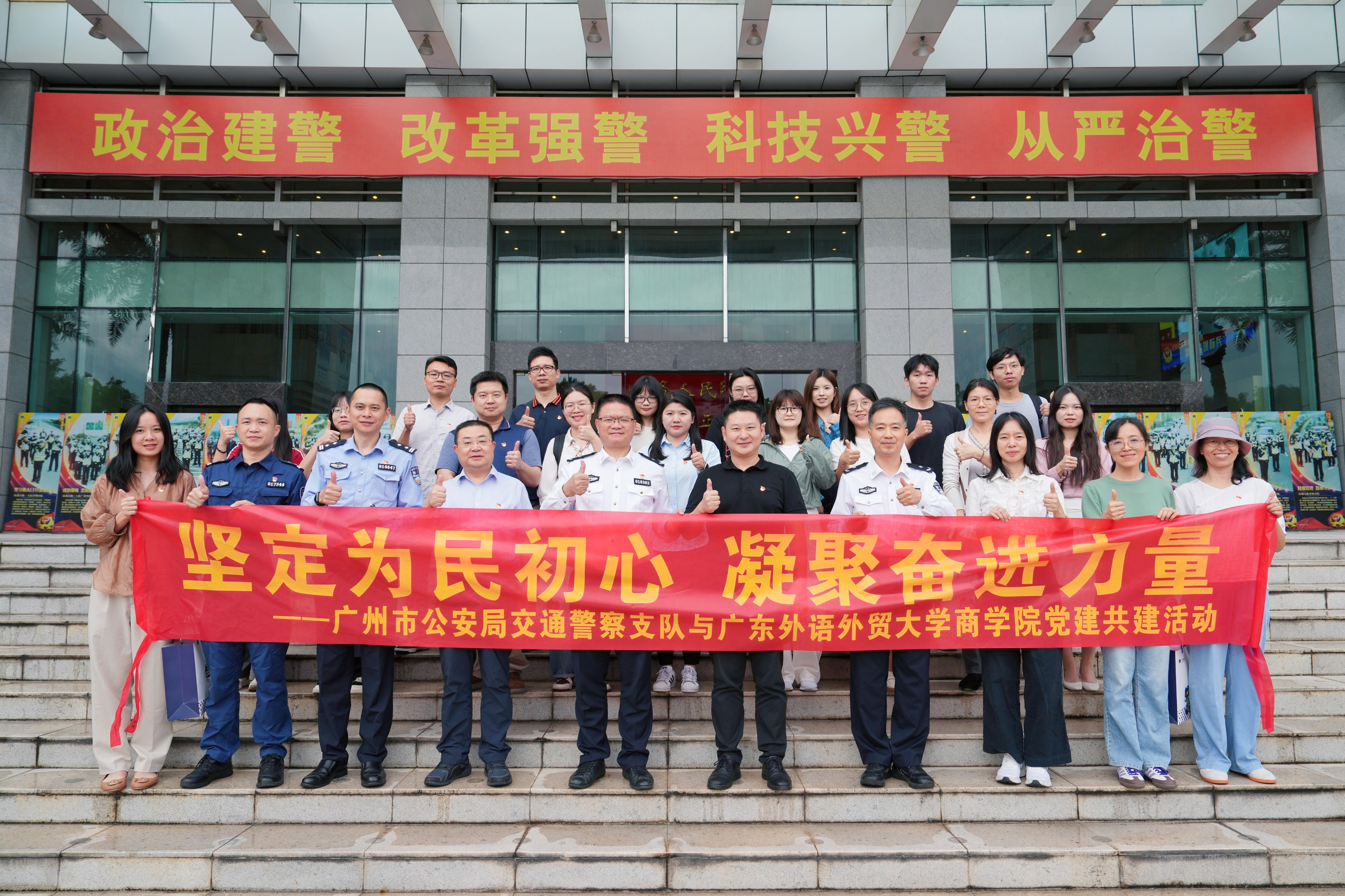 11月14日下午,我院与广州市公安局交通警察支队(以下简称“交警支队”)开展党建共建活动。交警支队党委副书记、政委周远帆,党委委员、政治处主任罗志雄,政治处副主任谢欣,战巡大队中队长钟勇明,团委书记毛志超等热情接待了我院一行,并举行党建共建座谈会。商学院党委书记肖锋,党委委员、副院长(主持工作)袁登华,市场营销教工党支部书记王秀芝,电子商务教工党支部书记沈中华,工商管理系主任曾驭然以及教工、学生党员代表参加活动。此次活动旨在深化双方党组织之间的交流与合作,提升党建工作水平,坚定为民服务的初心,凝聚起推动工作进步的强大力量。