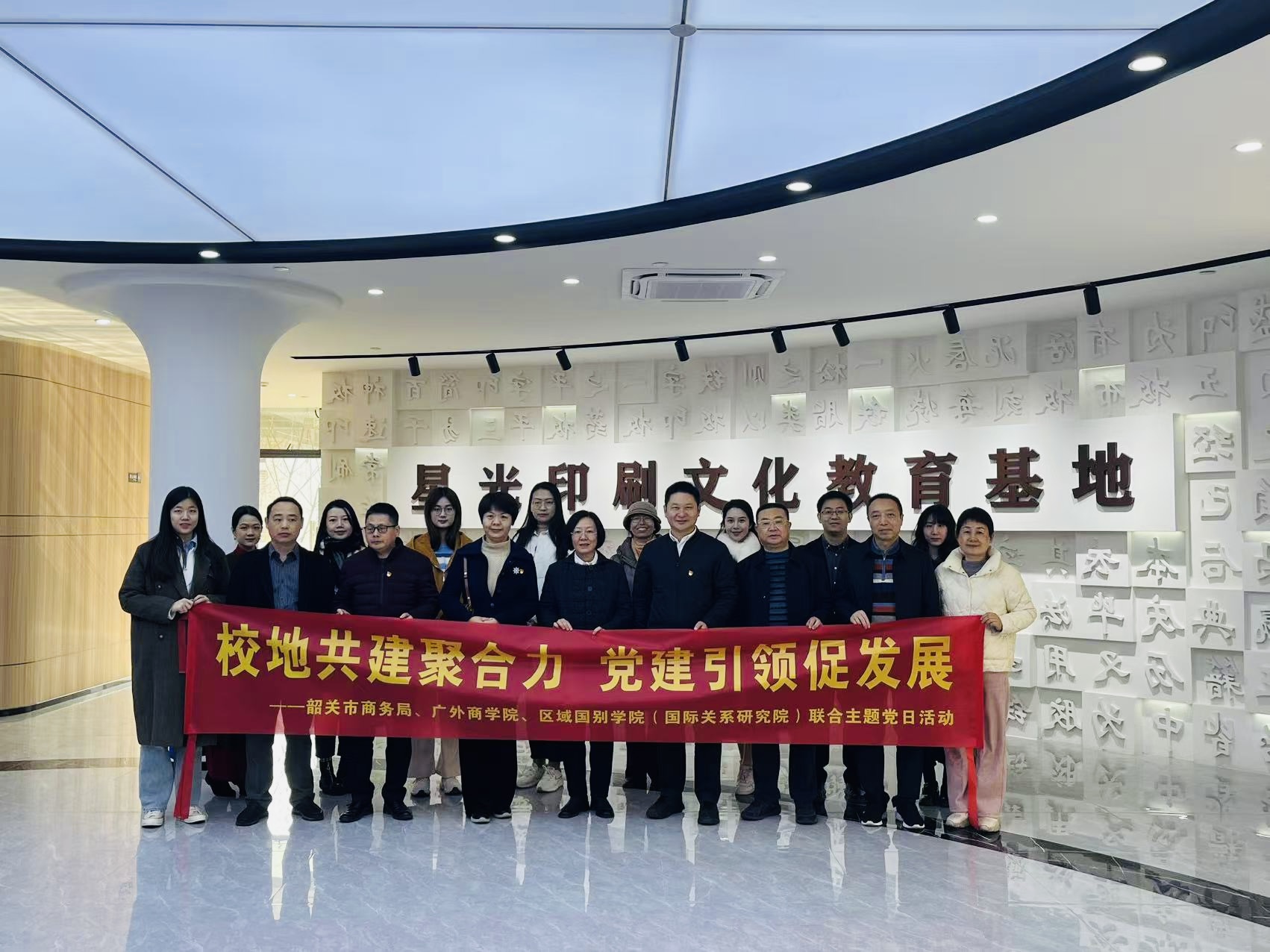 12月20日上午,商学院、区域国别学院与韶关市商务局举行了主题为“校地共建聚合力 党建引领促发展”的党建共建暨调研座谈活动。韶关市商务局党组书记、机关党委书记、局长张雯,党组成员、副局长丁冰,党组成员、副局长王卫军,机关党委专职副书记刘洁鹏,对外贸易科科长廖薇薇、广外韶关校友会会长刘亦翔等出席调研和交流活动。