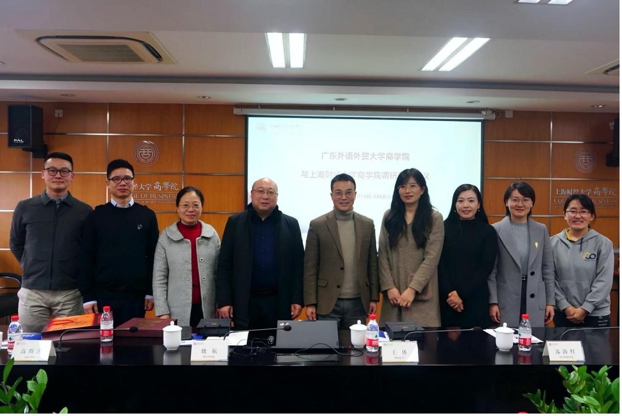 12月26日,商学院副院长曾楚宏、韩小花,党委副书记沈长霞,电子商务系主任沈中华,研究生办公室副主任孙玉姣,创新班教研室主任瞿瑛瑛和教务秘书卢文婕一行7人前往上海财经大学和上海大学进行调研。