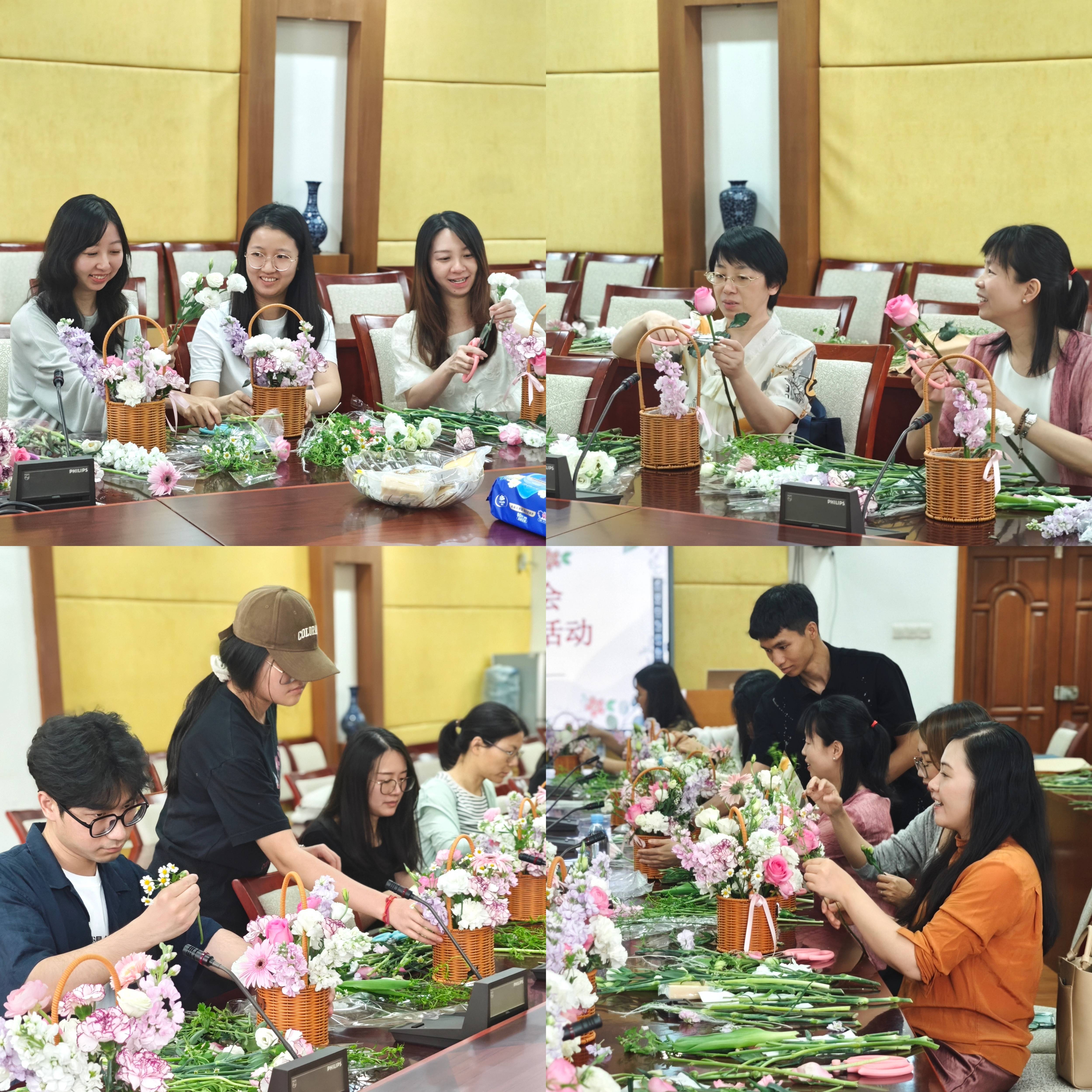 3月27日下午,作为商学院迎接大学建校60周年的系列活动之一,商学院工会“春日·匠心·花艺”主题活动在大学城校区温馨举行。活动特邀专业花艺师现场指导,教职工齐聚一堂,在花香四溢中体验花艺魅力,感受春日美好。