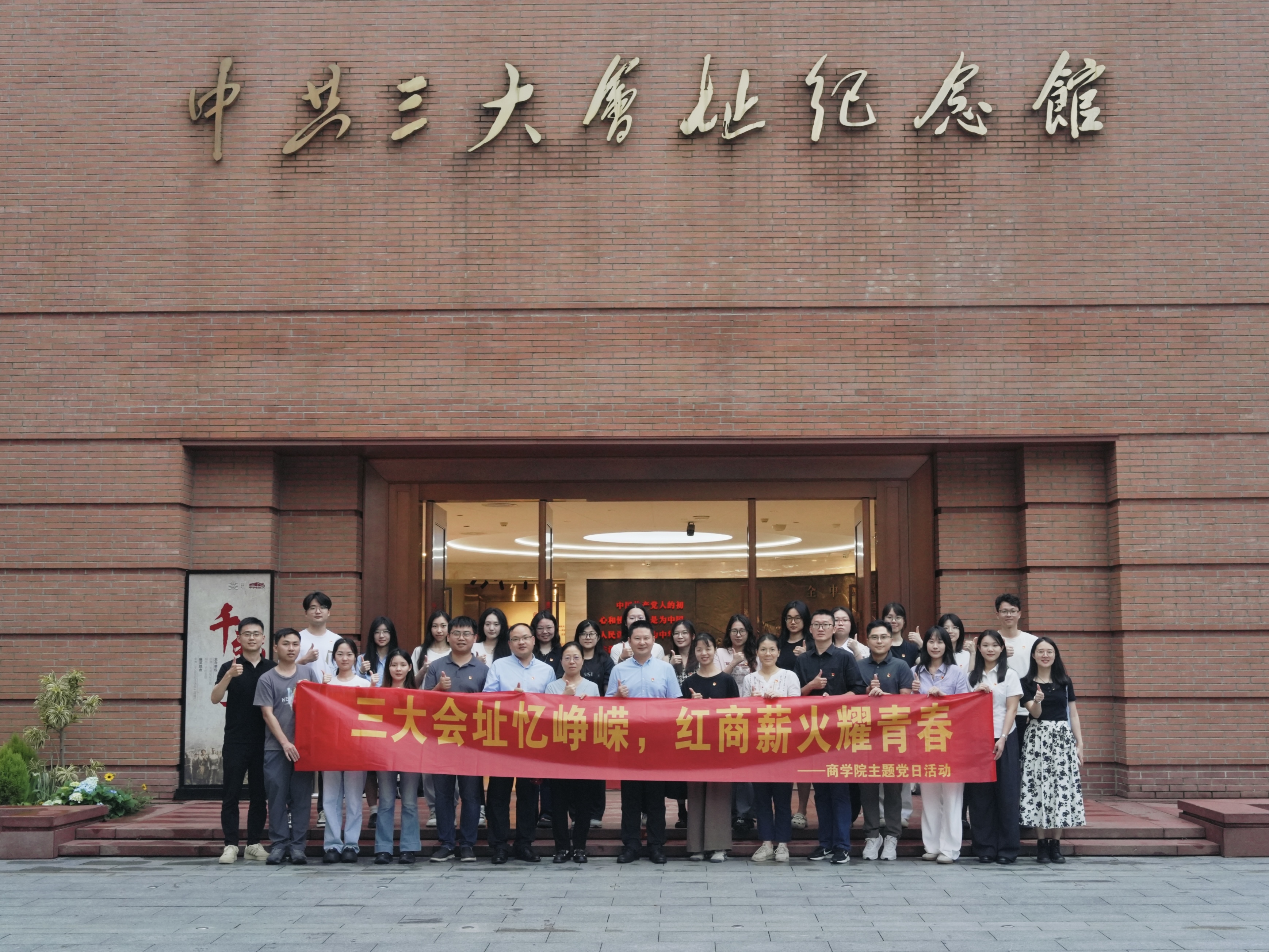 为深入贯彻中央八项规定精神学习教育,引导学院师生党员从党的百年伟大奋斗历程中汲取前进的智慧和力量,商学院党委于2025年5月7日前往中共三大会址纪念馆开展“三大会址忆峥嵘,红商薪火耀青春”移动党课暨主题党日活动。商学院党委书记肖锋、副书记沈长霞、学生党支部书记和师生党员代表参与本次活动,新河浦社区党委书记张银玲作为特邀嘉宾出席活动。