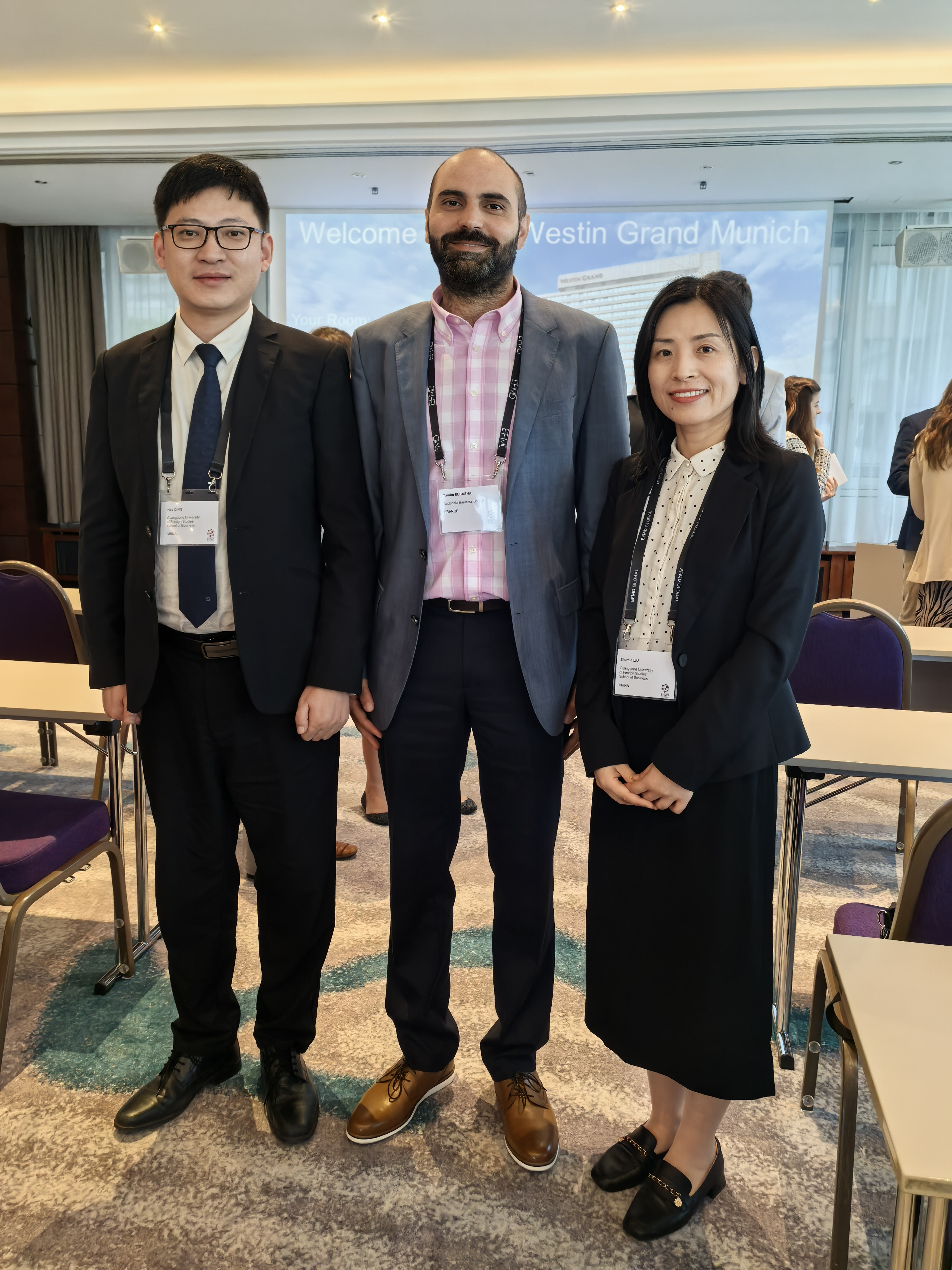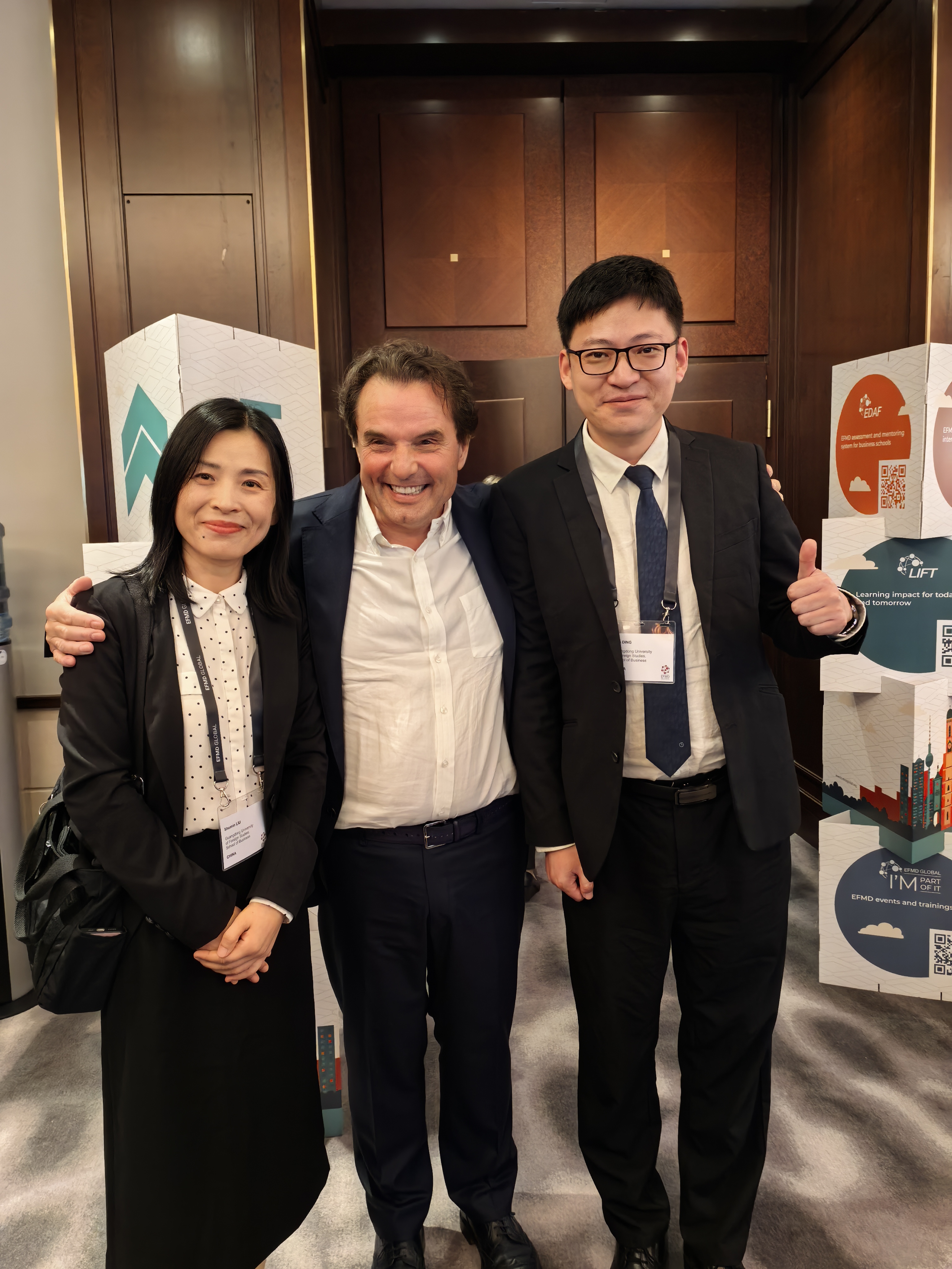 本次EFMD年会为全球管理教育界搭建了高水平的交流合作平台。我院代表团通过深度参与研讨、高效开展高层对话、积极展示学院发展成果,不仅精准把握了全球管理教育在人工智能、国际化转型、认证发展等关键领域的最新趋势与挑战,也为我院持续提升国际化水平、深入推进相关认证工作注入了新动力。会议间隙,我院代表还代表学院问候了在德国维尔茨堡-施韦因富特应用科技大学交换的24级研究生程紫薇和秦雨翔,转达学院领导对他们学习生活的关心和端午佳节的问候。