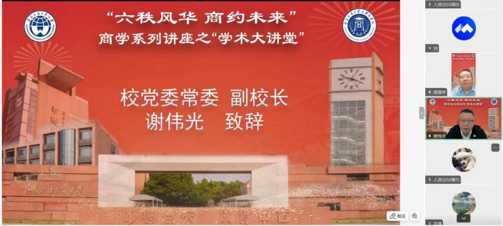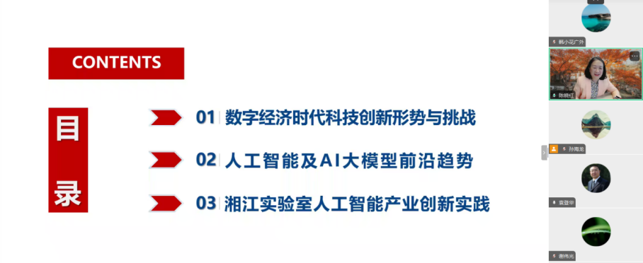 2025年3月28日下午,“六秩风华 商约未来”商学系列讲座之“学术大讲堂”首期启幕,通过线上会议形式举行。本次会议特邀中国工程院院士陈晓红作为分享嘉宾,以“人工智能技术前沿发展趋势及应用”为题,围绕人工智能技术演进、大模型应用、产业创新及人才培养等热点议题展开深度分享。校党委常委、副校长谢伟光出席活动并致开幕辞,我院副院长(主持工作)袁登华担任主持,200余名师生线上参与。