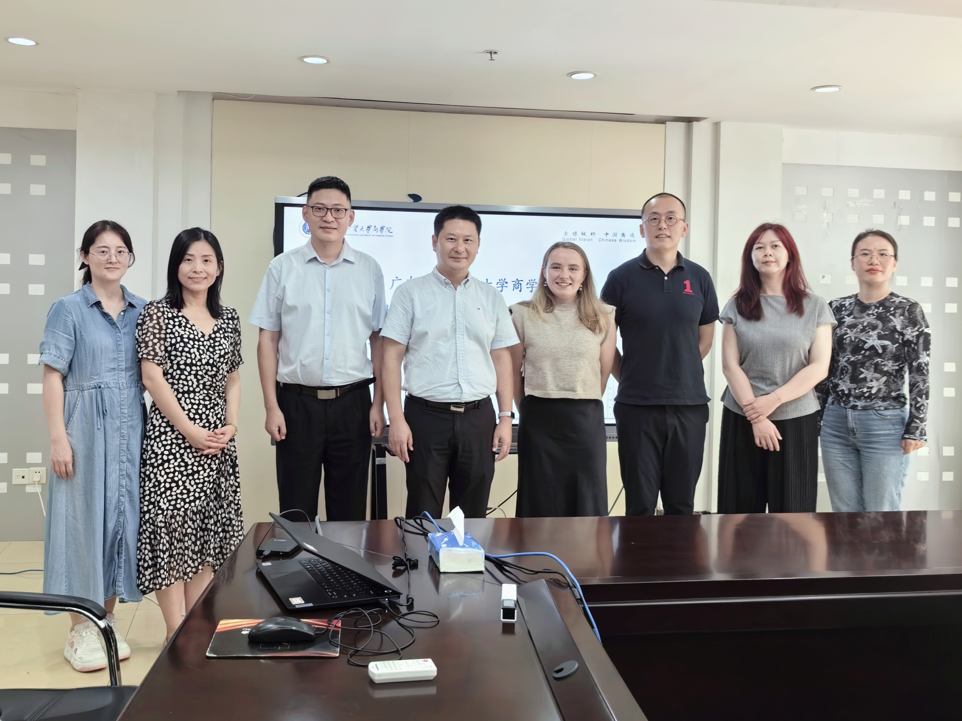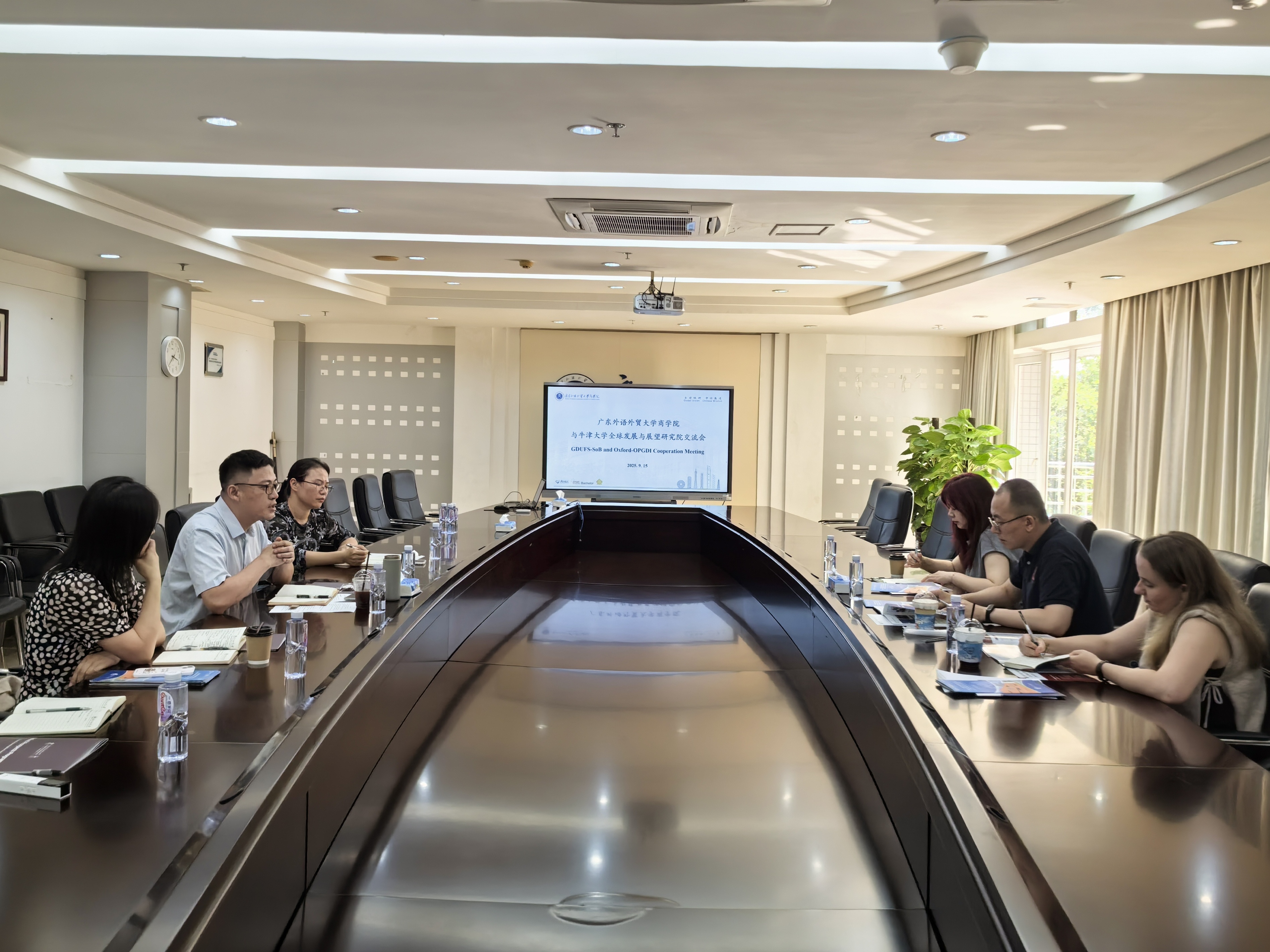 9月15日下午,牛津全球发展与展望研究院(OPGDI)外事联络官、牛津展望计划中国首席代表陆昱晨博士,学术推广负责人Ms Evie Brown,项目主任Ms Viola Liu来我院交流合作。广外商学院党委书记肖锋、副院长丁浩、国际事务办公室主任刘淑敏、主管王莹和焦月参加本次活动。会议由丁浩主持。
