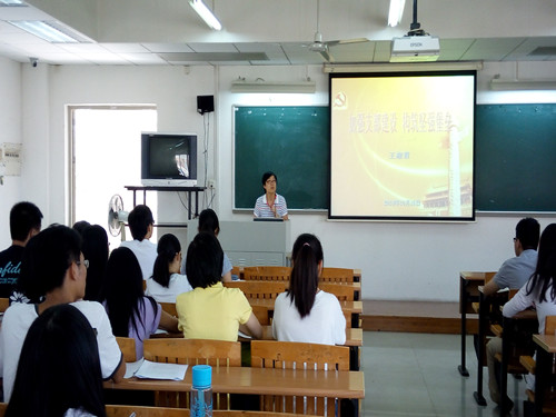 许志超讲话完毕,王淑君对全体党员干部进行培训。围绕“加强支部建设,构建坚强堡垒”这个主题,王淑君详细讲解了党支部的基本任务、党支部委员的职责、发展党员工作这三项内容,并强调了应加强党支部与团支部的联系,发挥学生党支部在学生党建工作中的骨干带头作用。
