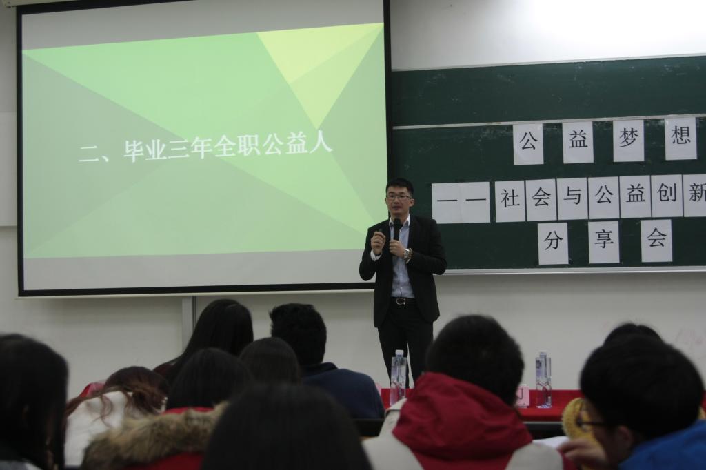 本网讯(文:吴晓芸 图:吴晓芸)4月10号晚十九点,我院公益梦想——社会与公益创新大赛分享会在F315举行。我校校友、齐天下创始人王卫应邀出席,去年大赛的冠军千与千寻团队的队长肖美婷以及队员陈蔚也到场进行了经验分享。