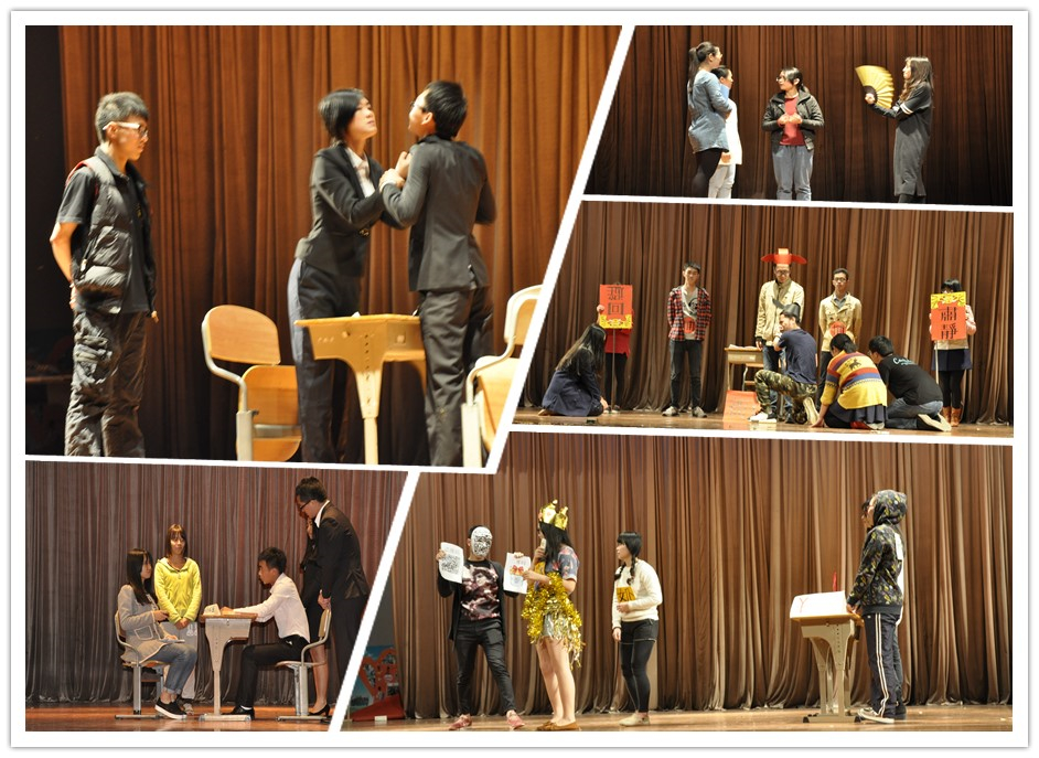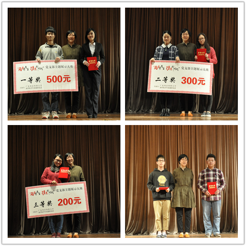 规则介绍完毕,精彩的比赛陆续上演。首先亮相的是13物流党支部带来的《绿色风向标》,以贴近生活的题材揭示了GDP绿色增长与环境保护之间的矛盾。而14学生党支部在小品《当子弹回到枪膛》中,以倒叙的形式为我们讲述了一个社会主义接班人如何一步步走到另一个对立面的过程,成员们在表演中的一个个创新的突破点更是得到了观众们的如潮掌声。紧接着,12营销党支部给我们带来《网络安全》,以生活中屡见不鲜的网络失窃事件,告诉了我们要严肃对待网络安全规范化、信息安全化的问题,而表演当中的新闻发布会由普通话突然切换为广东话这幕更是一大亮点、雷点。紧随其后的管理1301党支部所带来的《包孙外传》更是以雷人的舞台方式揭示现实生中钱权交易的黑暗一面,表演成员的无厘头给观众们留下了极大的印象。最后上台的是由13管理全英党支部表演的《纸牌村》,他们以投入的表演为我们演绎了生活中权势与个人利益斗争的情景。