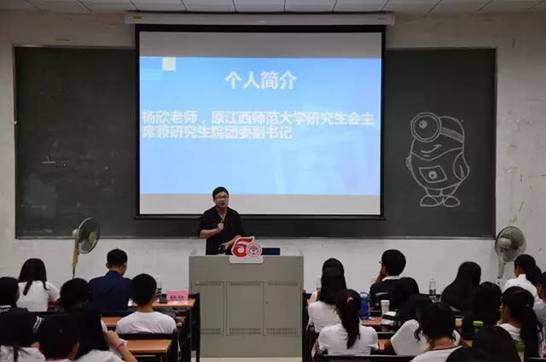 大会开场后,作为商学院物流系的辅导员,杨欣老师首先发表讲话。杨欣老师曾经是江西师范大学研究生会主席,对于学生工作这一方面有自己独到的见解。他根据自身的经验总结出“五意”“六有”。“五意”即责任意识、进取意识、服务意识、合作意识、大局意识,“六有”即心中有爱、肩上有担、腹中有墨、胸中有识、目中有人、手中有艺。简单的44个字,却有着意味深长的道理。