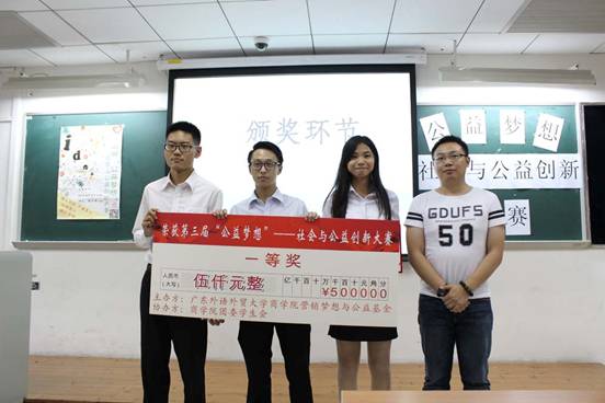 本网讯(文:陈正图:刘志敏)10月21日下午2:00,我院第三届“公益梦想社会与公益创新大赛”在教学楼F507举行,本场比赛邀请我校刘石兰教授、胡晓红副教授、吴清津副教授、校友杨振宇师兄、何宇师兄作为评委出席,旨在激发大学生的创业热情,培养和提高大学生的创业意识。