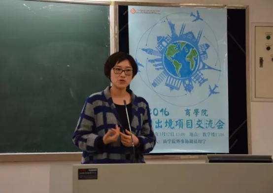 在此之后,是周宁老师的出国出境项目的具体介绍与留学经验分享。作为此次交流会的主讲人,周老师对我院的出国出境的项目:单向派出项目、交换生项目和双学位项目做了十分详细的介绍与解释。并具体介绍了昆士兰大学2+2双学位项目、昆士兰大学交换项目、纽约州立大学石溪分校工程和应用科学学院联合培养硕士项目和赴韩国中央大学物流系交流项目等项目。除此之外,周老师还细心地向同学们解释了项目申请的大致流程,让在座的同学对这些项目有了进一步的了解。在项目介绍之余,作为校友,她与同学们分享了她在澳大利亚悉尼大学留学期间的学习经验与生活点滴,同时也衷心希望同学要好好珍惜学校所提供的出国出境机会。