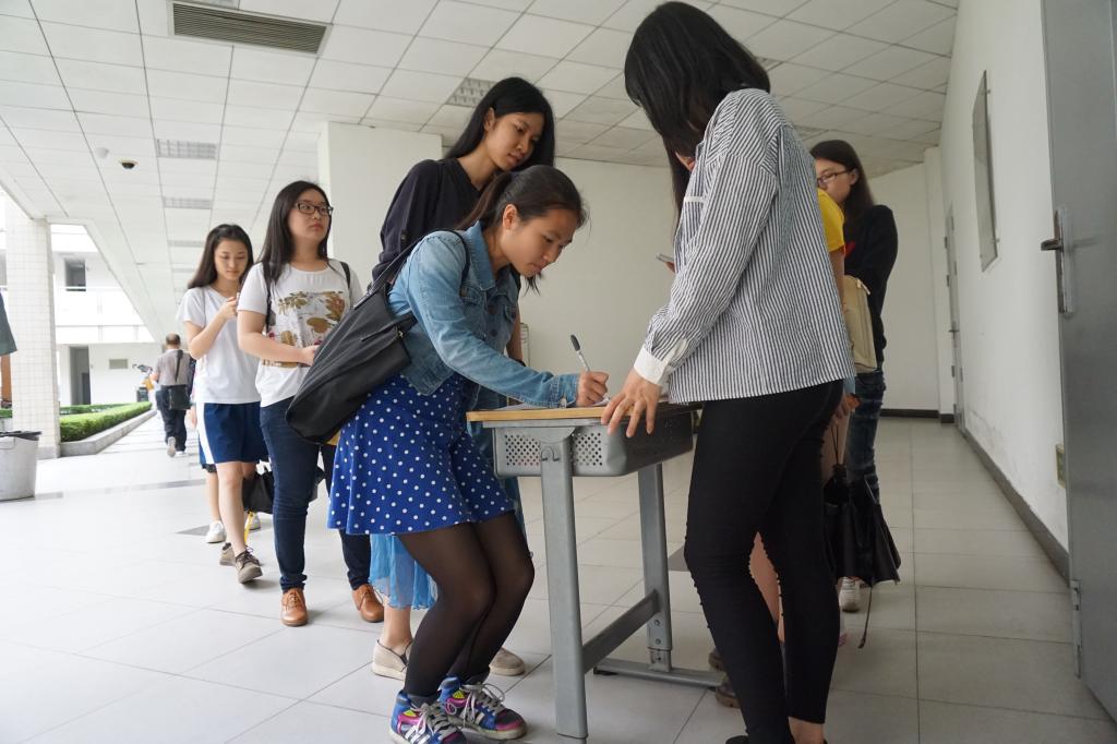 讲座开始前,各入党积极分子在工作人员的指导下在教室外签到后陆续进场,安静就坐并等待讲座的开始。