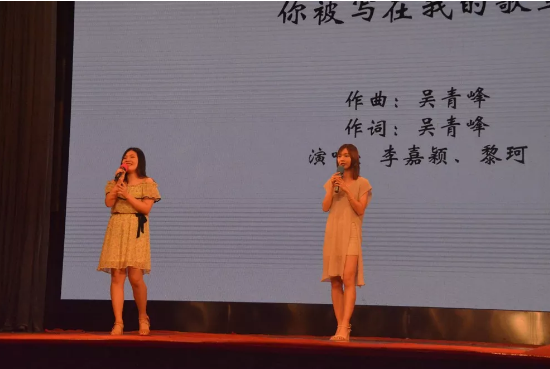 由学工办老师带来的《真心英雄》,则向我们直接表达了他们对毕业生们美好的祝愿。回首昨日,展望明朝,我们应感谢老师为我们的辛勤奉献,他们都是我们这四年中最值得敬爱的真心英雄。随后上场的Infinity双截棍协会向我们展示的是动静有法,刚柔并济的双截棍表演,棍协的血性儿女们给我们带来了震撼人心的感官体验。而由商学院艺术团舞队队员周叶和陈诗榕带来的双人民族舞《幻》,轻歌曼舞,婀娜多姿,如梦如幻令人赞叹不已。