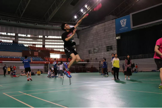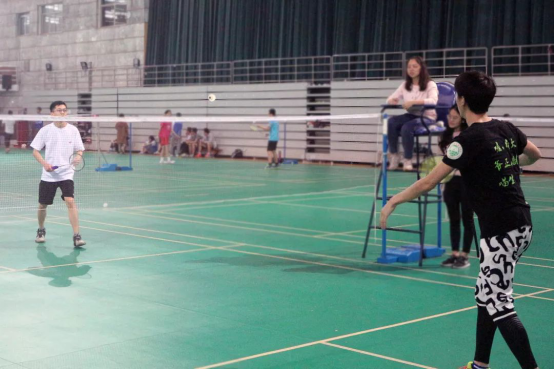早上的比赛在一片紧张而激烈的气氛中落下帷幕,下午的比赛于两点开始。每位选手都秉承着“友谊第一,比赛第二”的体育精神,比赛场面精彩激烈,却又不失欢声笑语。下午的比赛分为男双、女双和混双。运动员们单个上阵已经能够威震四方,而强强合体,则让比赛更加的令人血脉贲张。