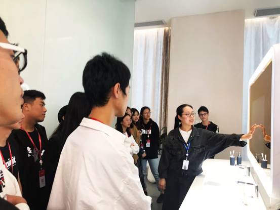 校友还向我们展示了视源的系列产品:致力打造智慧教室、智慧校园、智囊学区的SEEWO交互智能平板,集高清显示触摸书写、无线传屏、远程会议平台、丰富办公应用于一体的高效会议平台MAXHUB,一键“make up”美颜的智能化魔镜,贴心实用的医疗手环……这些都给同学们带来了一种置身于未来的前端感受,令大家感受到了科技带来的魅力。无论是医疗、教育亦或是企业发展领域,视源科技每个产品的设计都体现着其企业使命与价值——“因我们的存在,让更多人事业有成,生活幸福。”