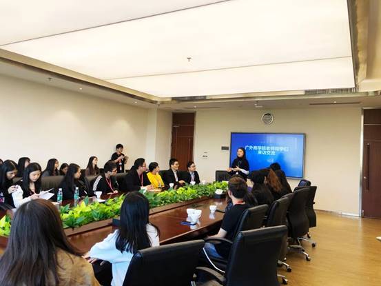 刚抵达第二产业园后,商院校友、视源科技人力资源副总裁吕丹凤,商院池晓霓、林金霞师姐,经贸学院黄志鹏、伍云龙师兄就对我们一行人的来访表示了热烈的欢迎,并对母校多年的教育、培养表示感谢。