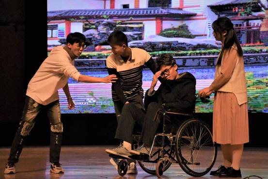由商学院艺术团话剧队带来的《寻》,为我们讲述了一对恋人在平行宇宙间的遇见与分别演绎了一段穿越时空的动人故事。接下来是游戏环节,现场气氛活跃、同学们积极踊跃参与互动,不少观众正确回答问题并获得奖品。商学院潘文超教师带来的吉他弹唱也是本次晚会一大亮点,老师一上场便受到同学们的热烈欢迎,观众席上不约而同地成为一片荧光海,最后以同学送上的鲜花为表演画上句号。