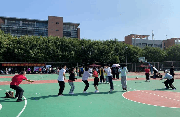 同时,学院教师以组队的形式,踊跃参加趣味运动会项目。在趣味项目中,商院教师们两两配合,背对背传球接力;集体跳绳,大胆谨慎,节奏分明;单腿火车跑,六人齐行,协力向前进;袋鼠接力跳,并腿跳跃,一起一落中欢快又活力;手握红旗蛇形跑,逐个接力斗志高,红旗飘飘多欢笑……老师们在精彩纷呈的比赛中获得了难忘的集体体验,也收获了多个项目的好成绩。