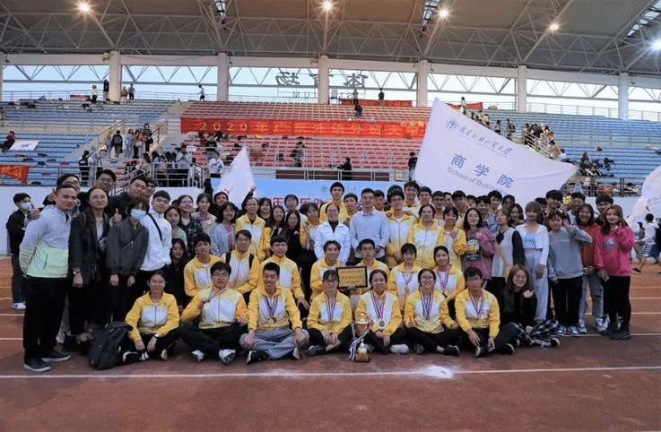 11月27至28日,2020年广东外语外贸大学运动会在南校区体育场举行。商学院师生以饱满的精神面貌参与到运动会中。在赛场上,学生们身姿矫健,乘风冲刺,用迸发的热血和高昂的斗志宣告青春力量;教师们热情高涨,齐心协力,用不懈的努力和巧妙的配合展现运动风采。