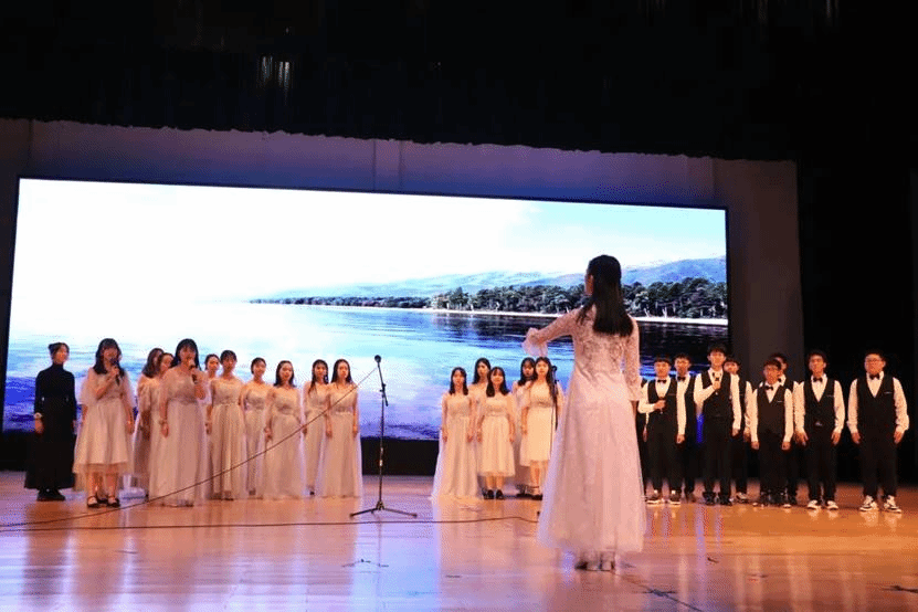工管2002班的合唱表演《凤鸣岭南+贝加尔湖畔》让观众们感觉漫步在贝加尔湖畔。
